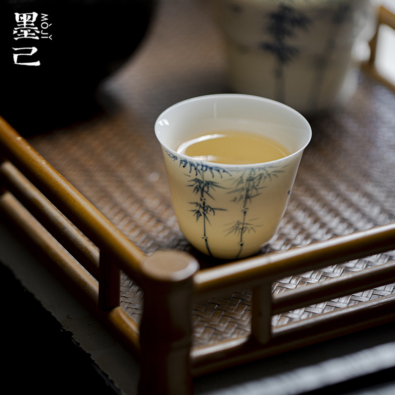 墨己の白い磁器の薄い胎の手描きの青花の竹の逸品の茗杯の工夫の茶器の家庭の文人の器の陶磁器の単杯の湯飲み