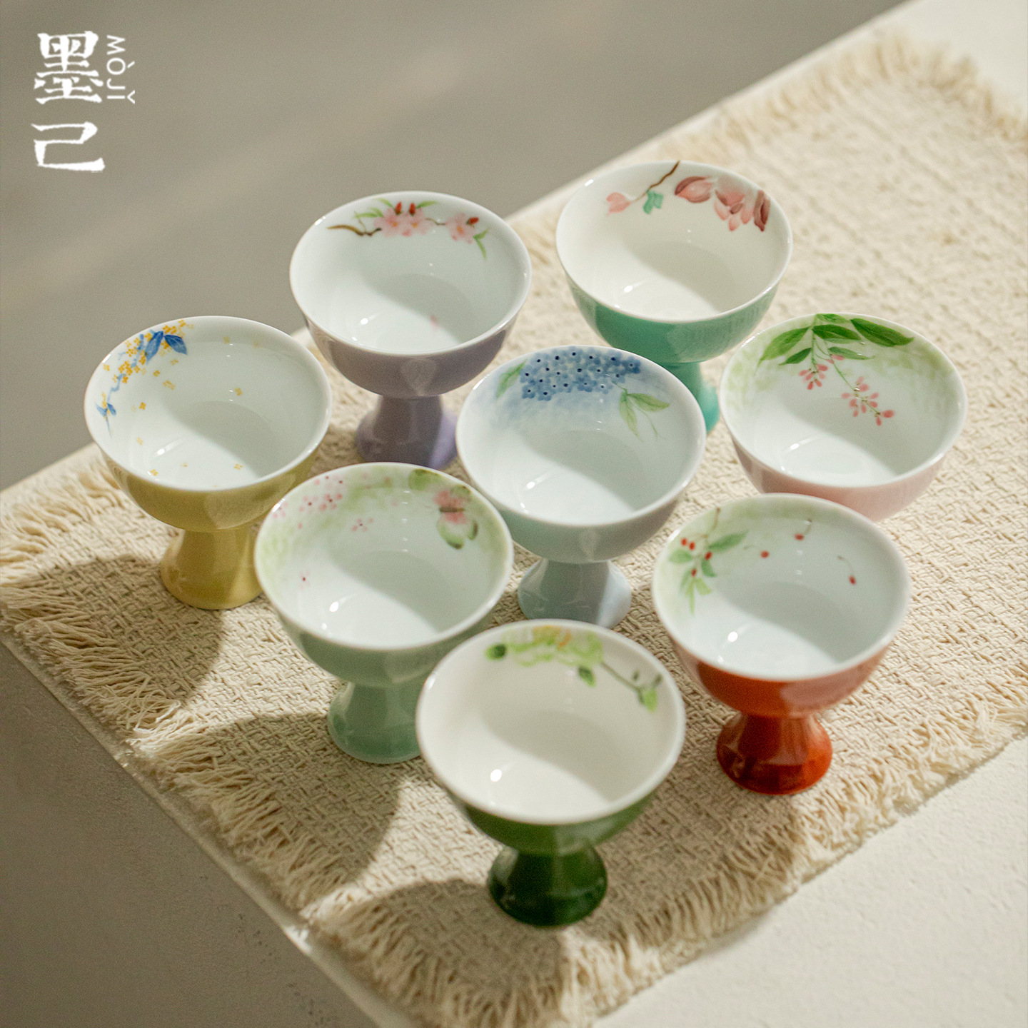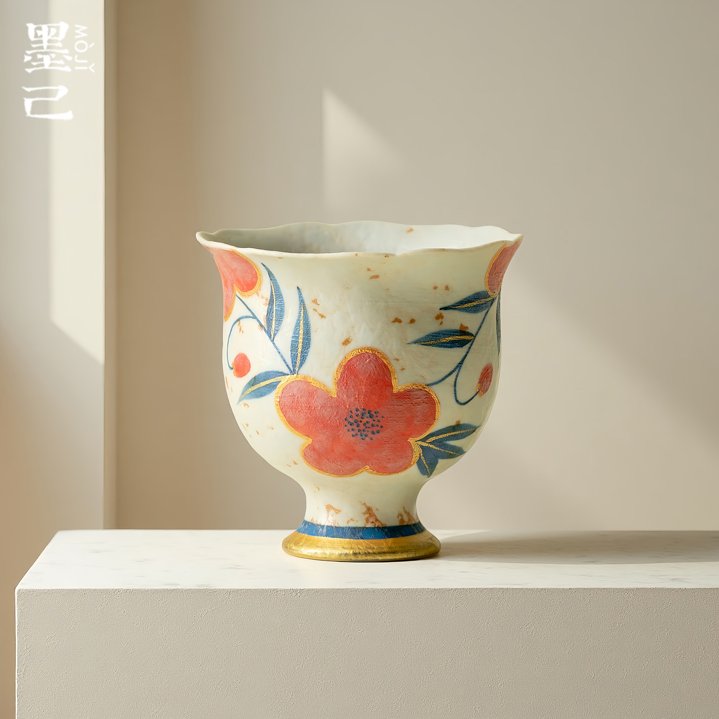 墨己焦糖釉手绘桃花仿古陶瓷主人杯家用茶杯高足花朵品茗杯单杯