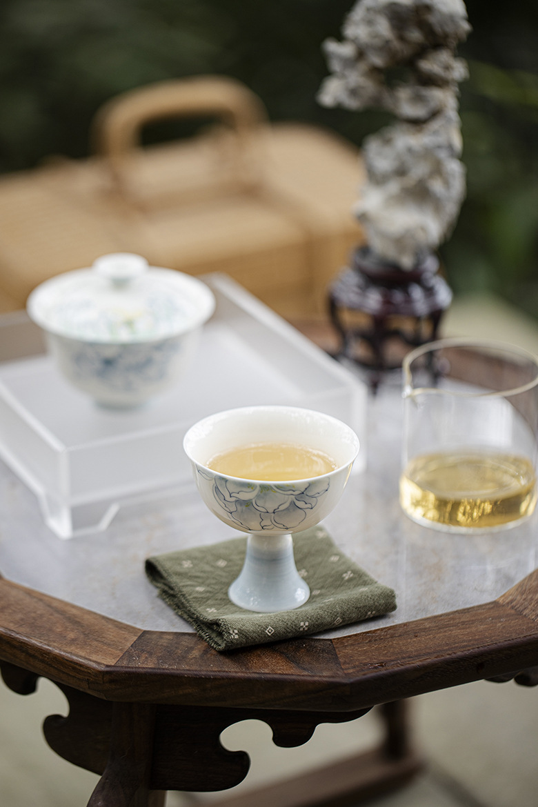 色の分類 翡翠の泥-青と白の蓮の韻-模造宋の背の高いティーカップ