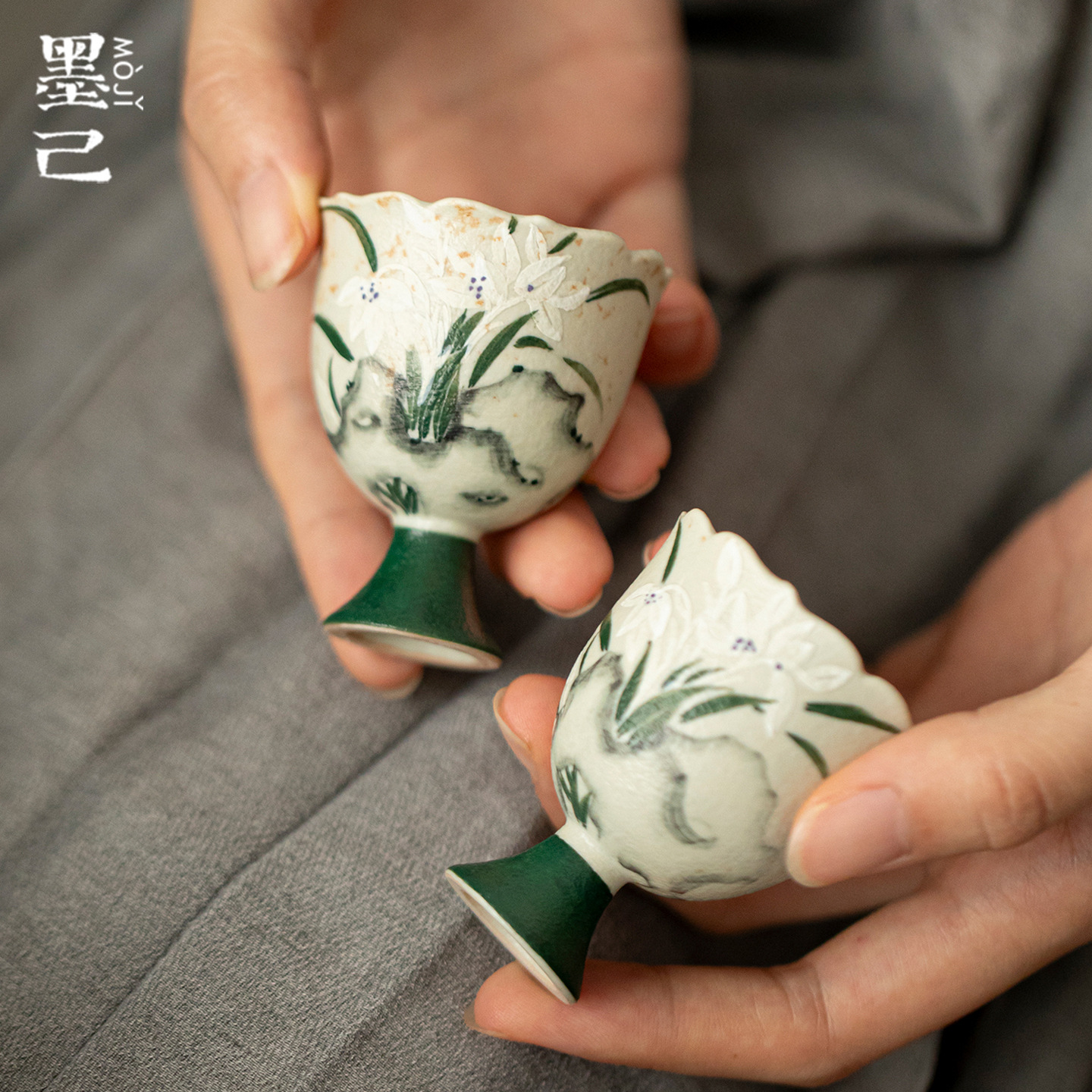墨己 越窯青磁 艾草青悦心花口香杯 香りカップ 茶器 陶器 茶杯 シングルカップ