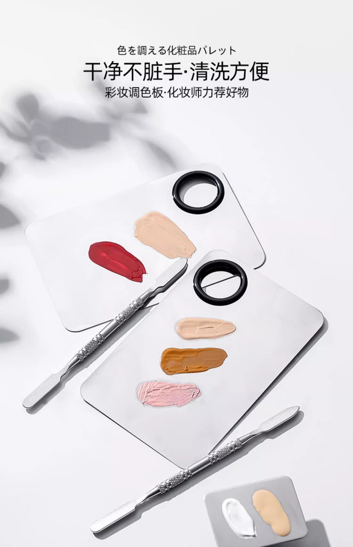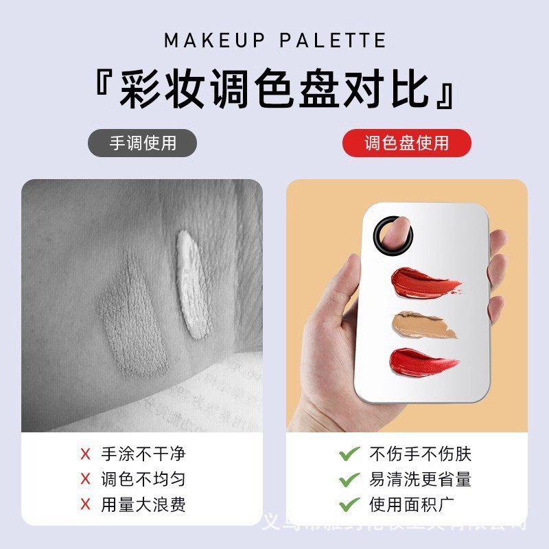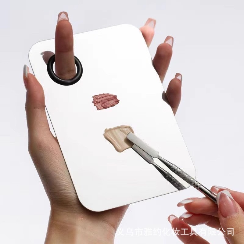 彩妆调色板一字粉底刷化妆刷粉底液调色板不锈钢专业调色盘调色棒