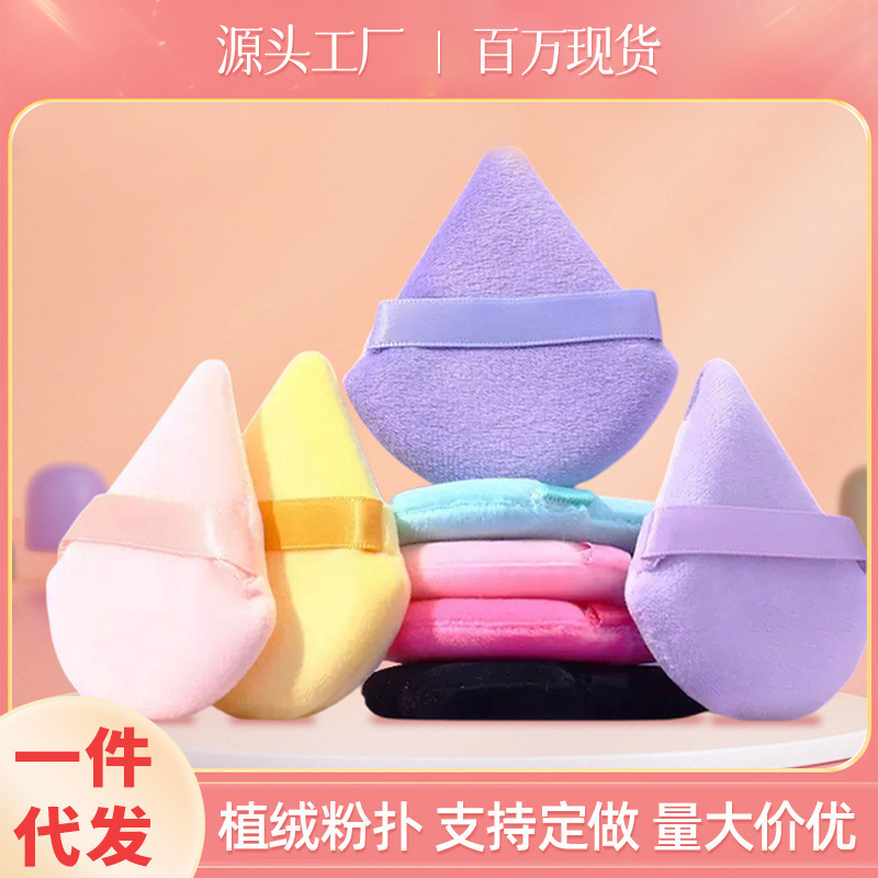 メーカー卸売植毛ルースパウダーパフ、セッティングパウダーパフ、メイクコットン、三角パフ、天然スポンジパフ、ウェット&ドライ
