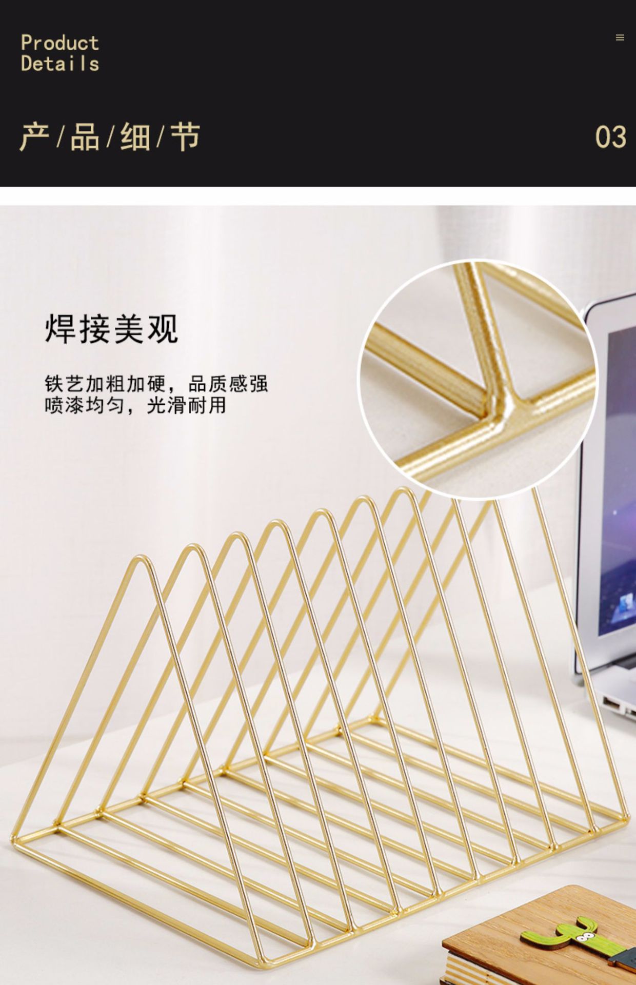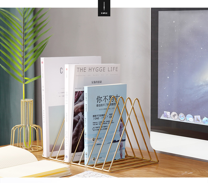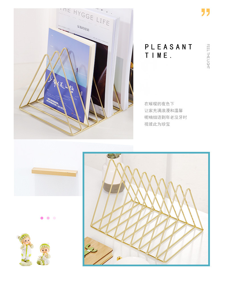 北欧鉄芸本棚北欧insクリエイティブ金色三角形本棚鉄芸デスクトップ書斎デスクファイル
