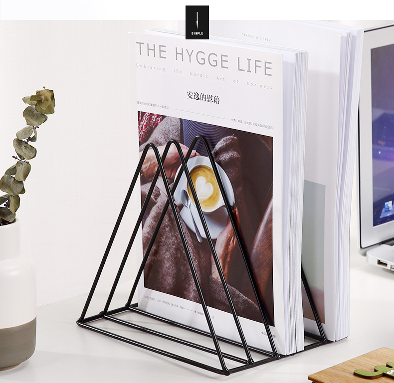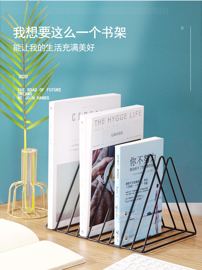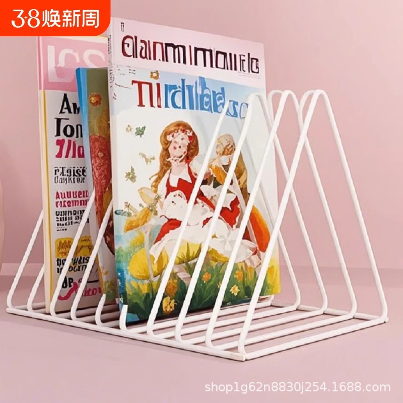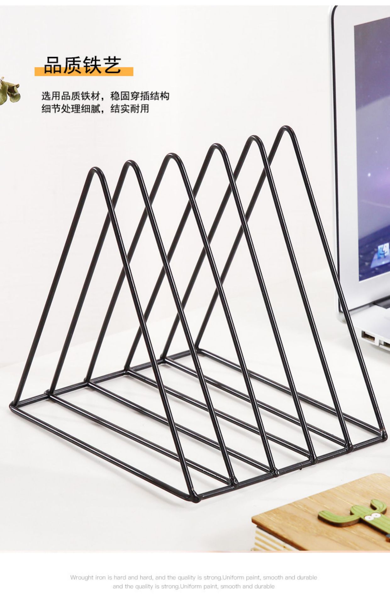 北欧スタイルの三角形ブックスタンド鉄イン小さな本棚学生書籍収納デスクマガジン収納ラック