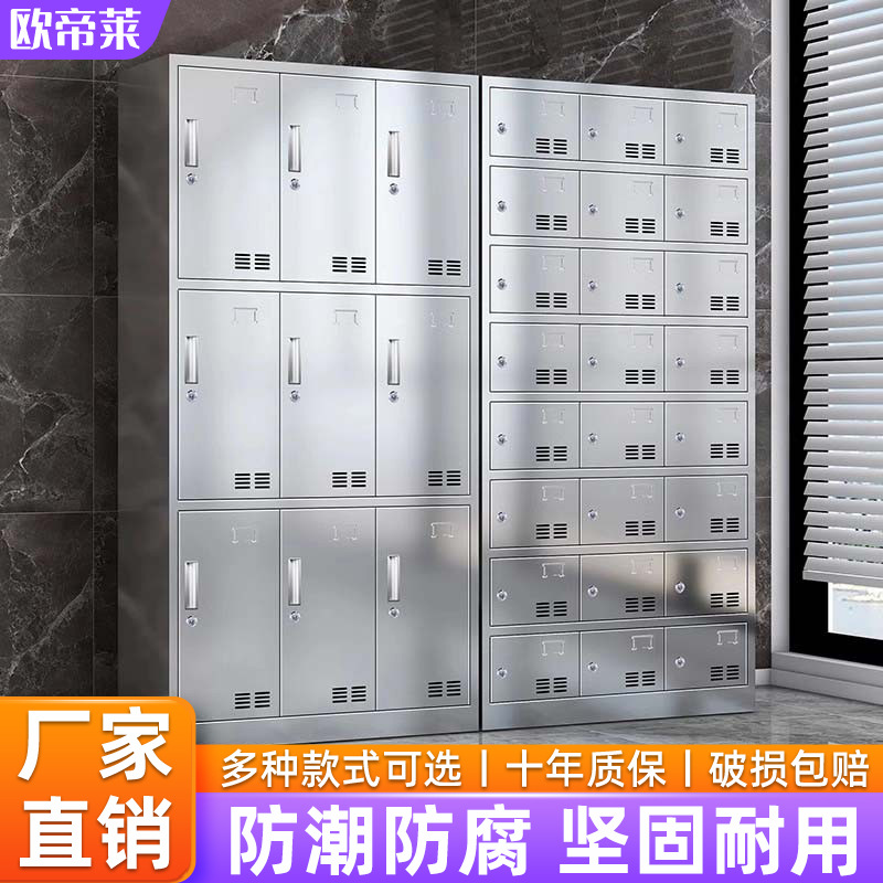 304ステンレス製更衣室従業員用収納キャビネット食品工場多格子靴箱無塵浄化作業場更衣室