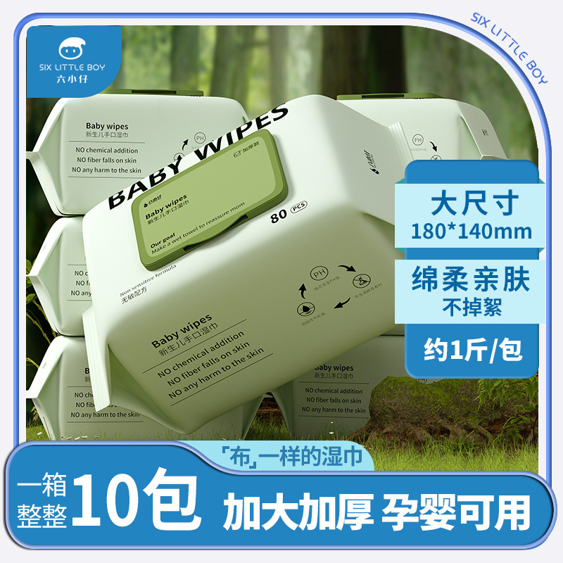 六小仔の赤ちゃんのウェットティッシュの手の口のおならのウェットティッシュの大きい包みの大きい蓋の80は新生児のウェットペーパーの箱の卸売りを吸います。