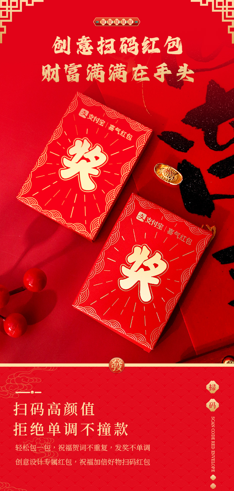 創意支付宝紅包通用抽選年会表彰年末ボーナス二次元コード個性電子紅包流通