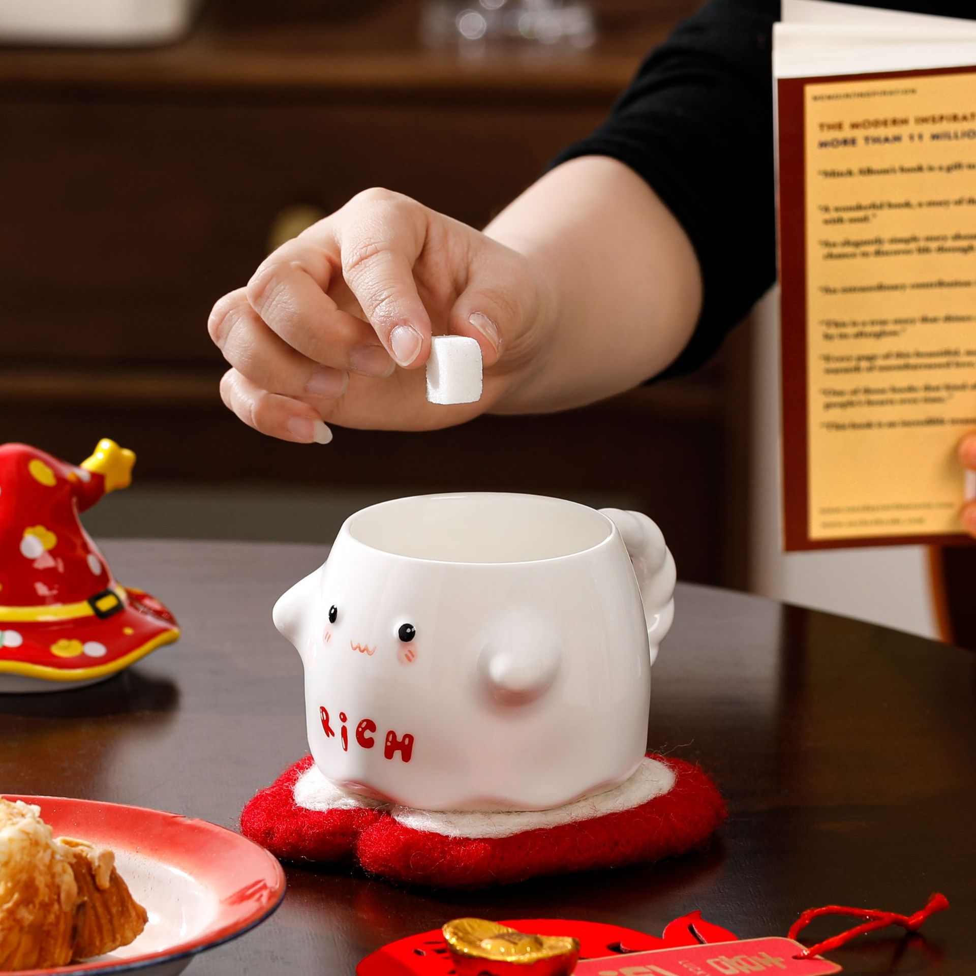 新年招財小福宝創意陶磁器カップ蓋付き家庭用水マグカップお祝いギフトボックスお土産カップ