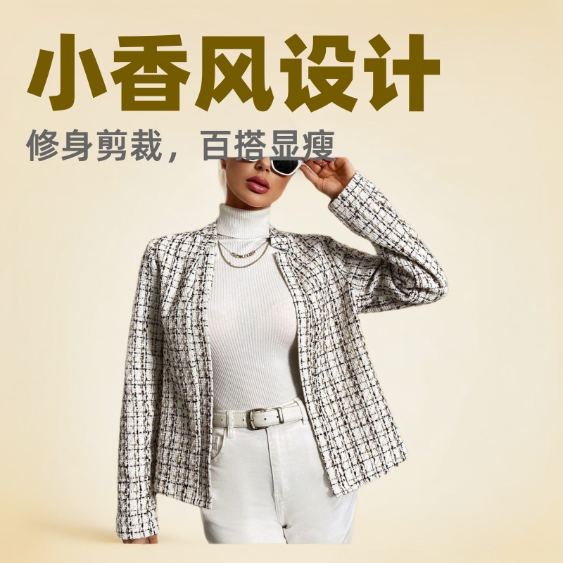 外国貿易 秋物 欧米風 クロスボーダー レディース カーディガン スリムフィット シャネル風 エレガント オフィス風 スーツジャケット