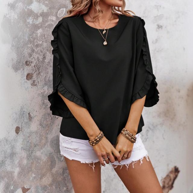 2025欧米の国境を越えたアマゾンの女性の丸首の不規則な7分袖のゆったりした快適な上着