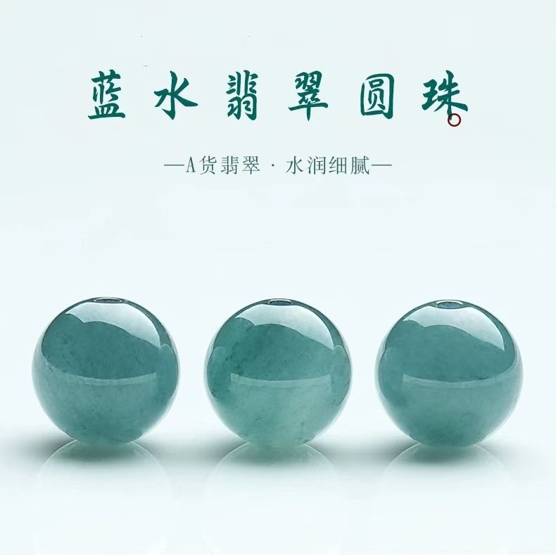 天然A货蓝水翡翠散珠 diy串珠配珠手链冰种玉珠飘花手串配件材料