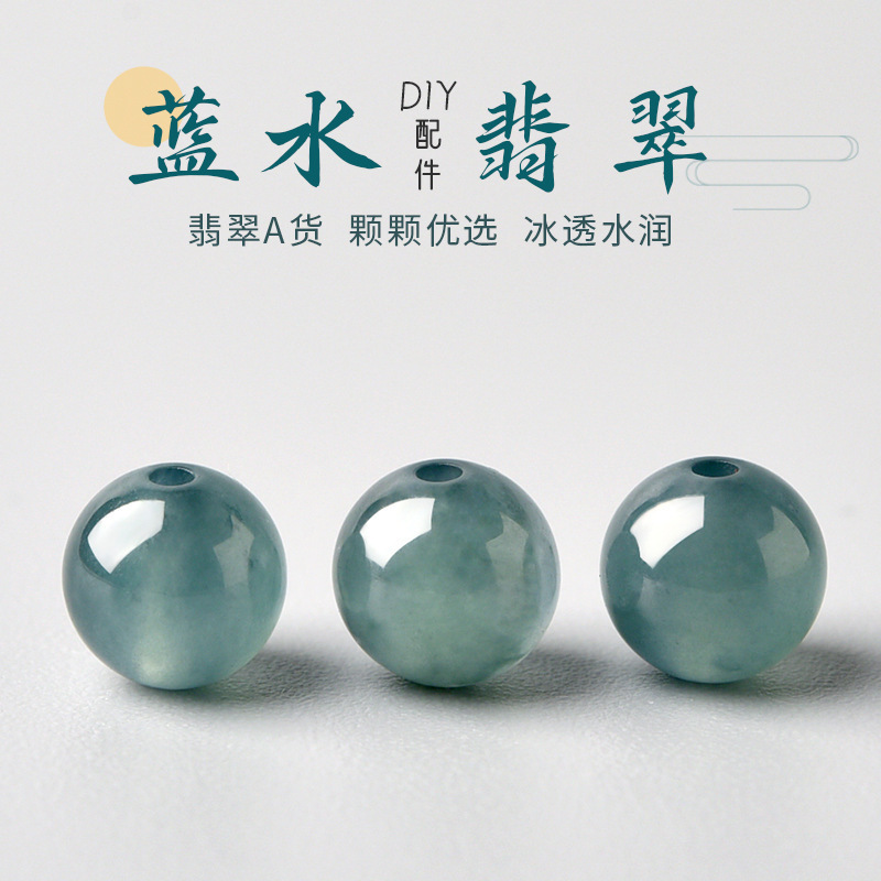 翡翠危険材料藍水円珠A品氷種アクセサリービーズ半製品手作りdiy手串ネックレス編み散ロット
