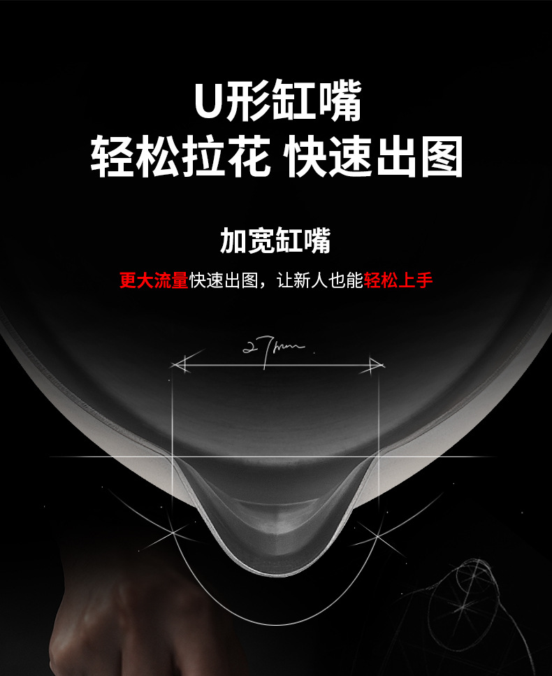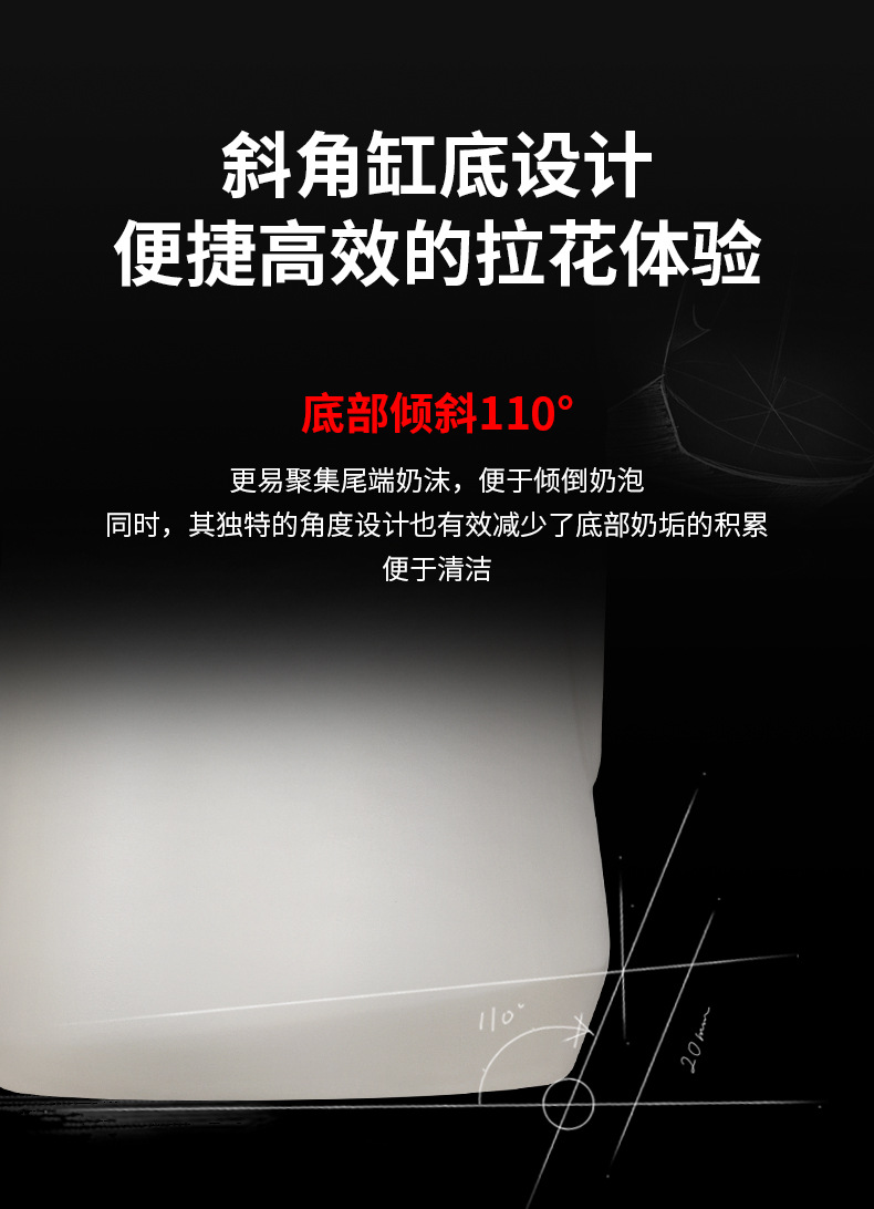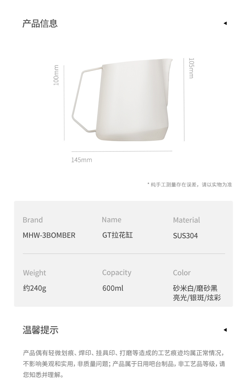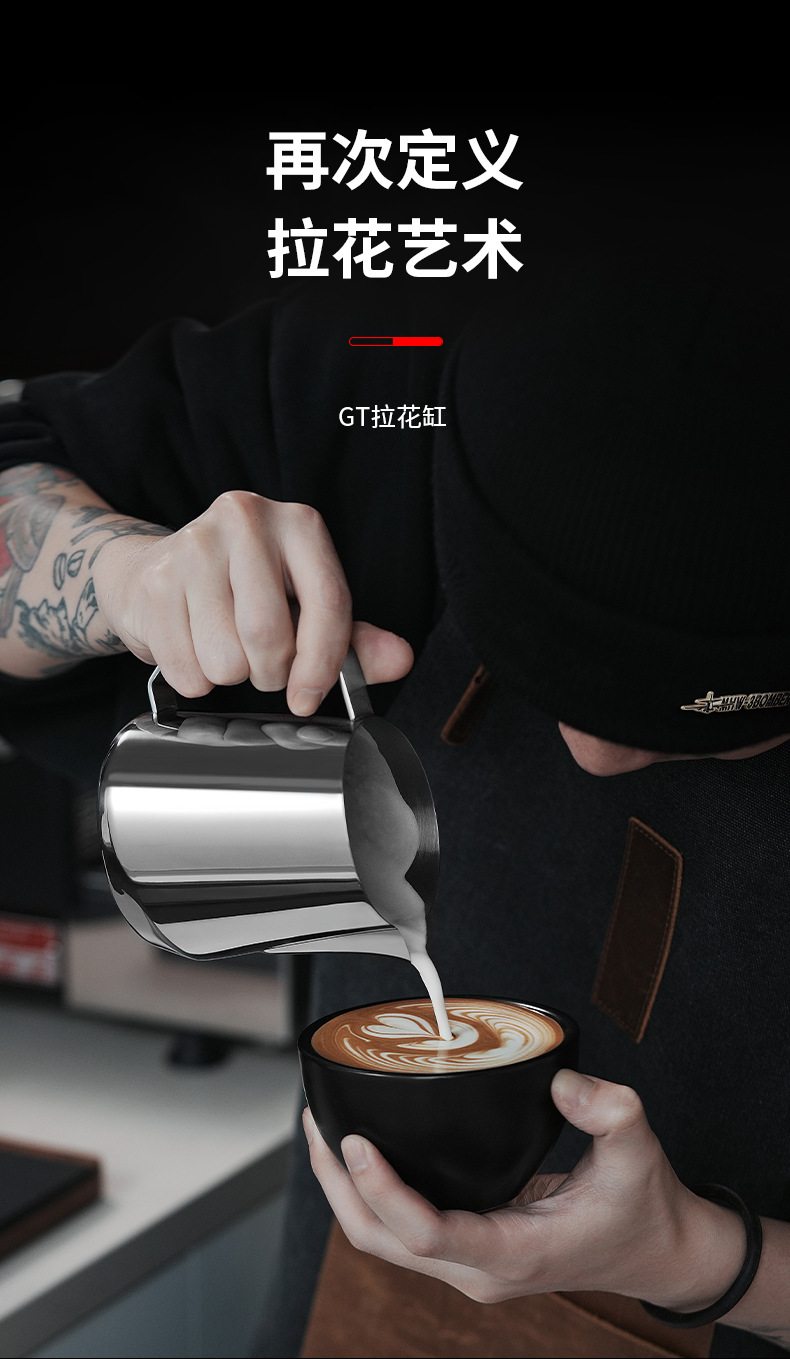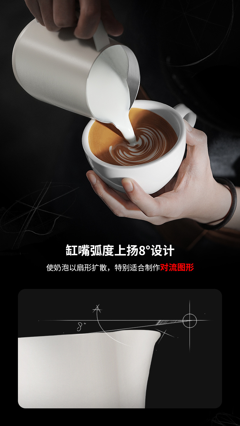 MHW轰炸机GT无柄拉花缸 咖啡拉花杯 专业打奶泡杯不锈钢带刻度