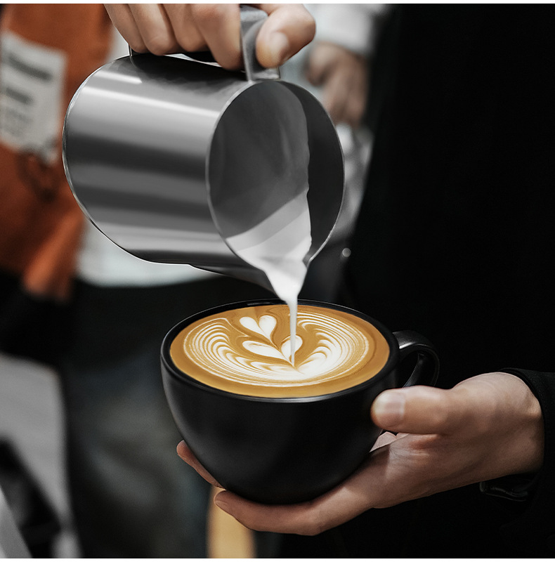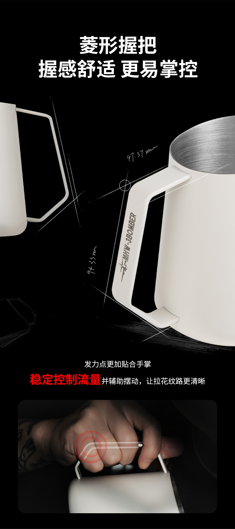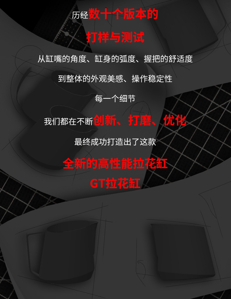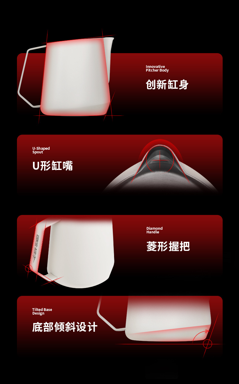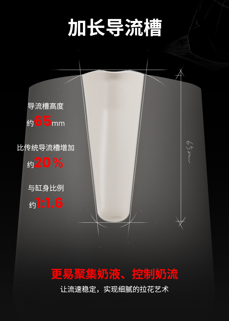 MHW轰炸机GT无柄拉花缸 咖啡拉花杯 专业打奶泡杯不锈钢带刻度