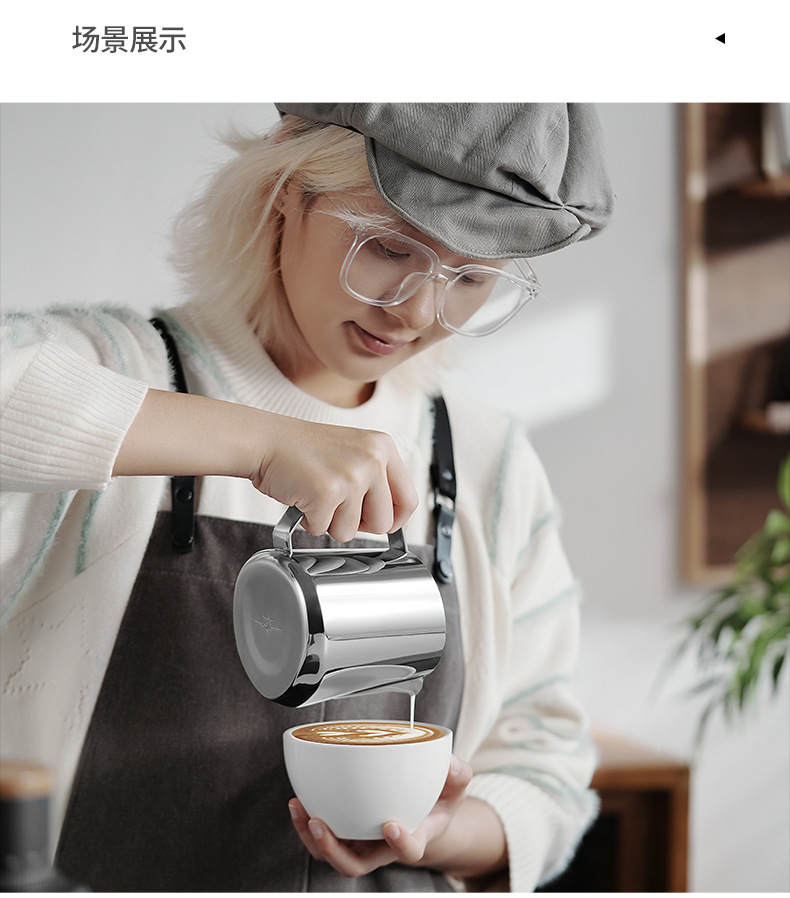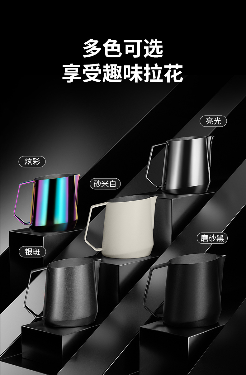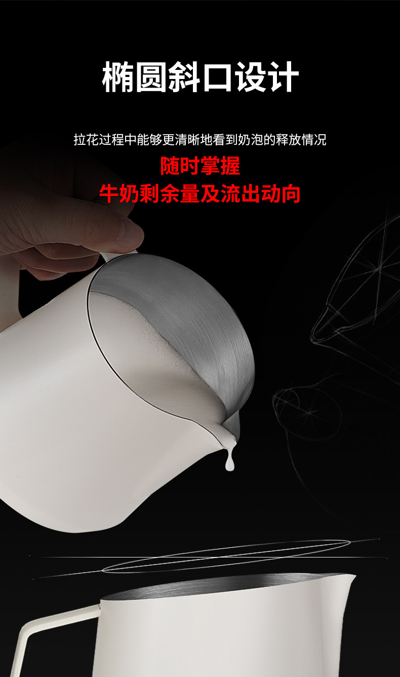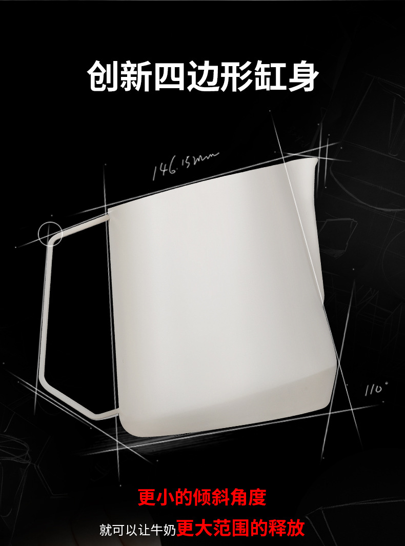 目盛付きステンレス製のプルカップを厚くした花式コーヒーの斜口口口のミルクポット350/450/600ml