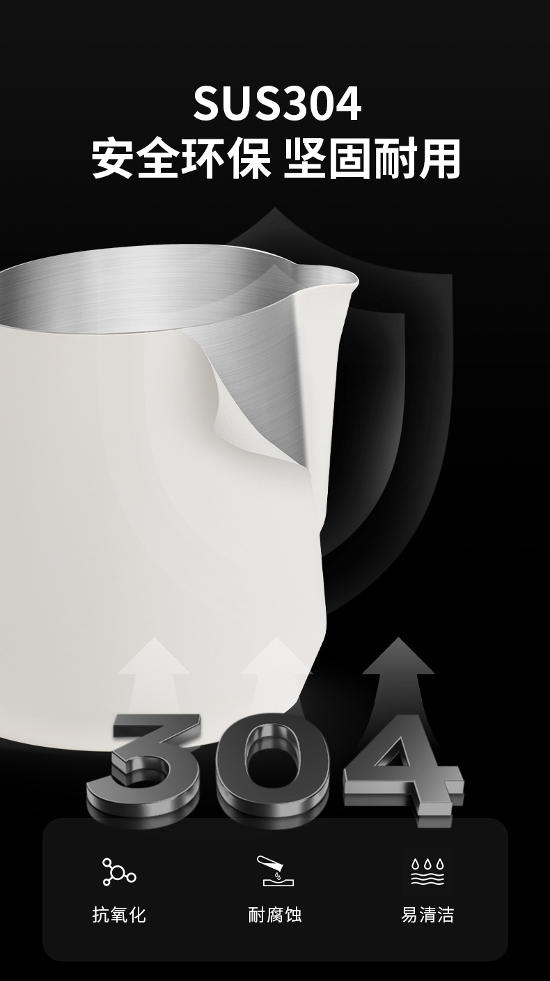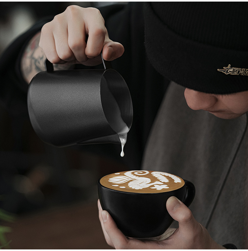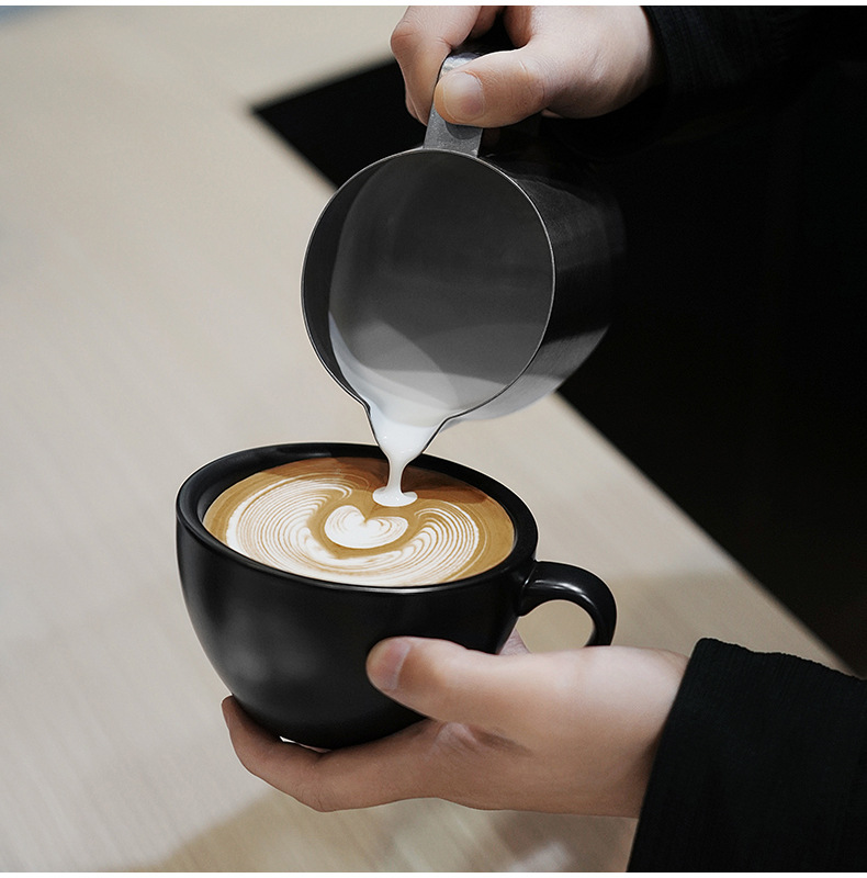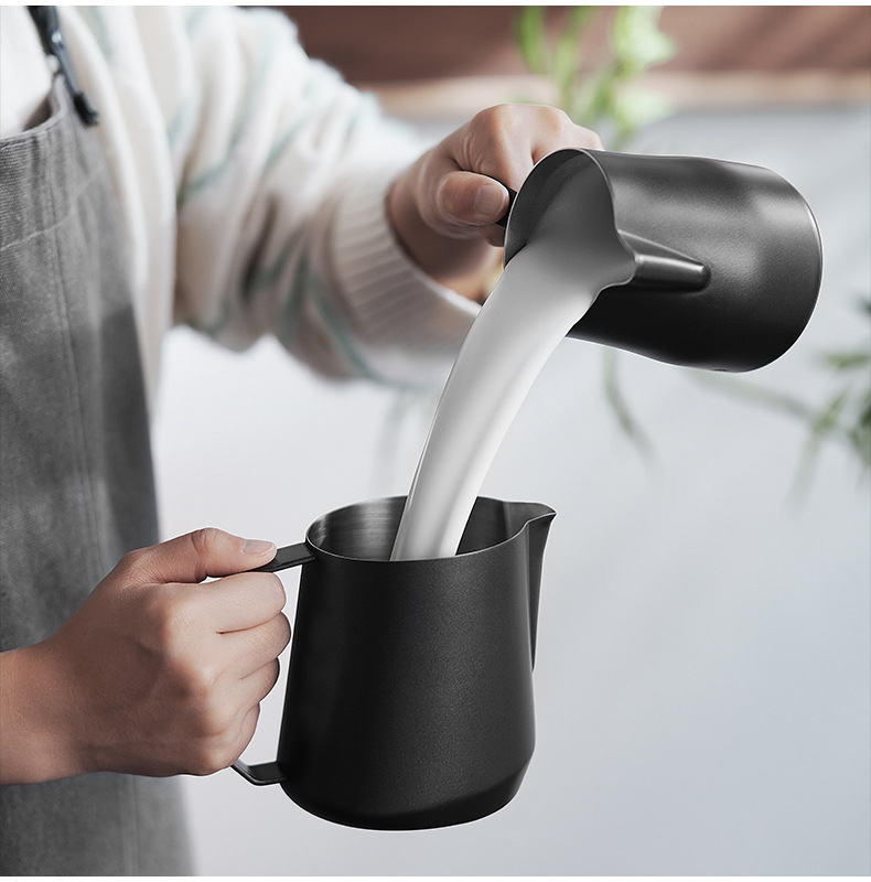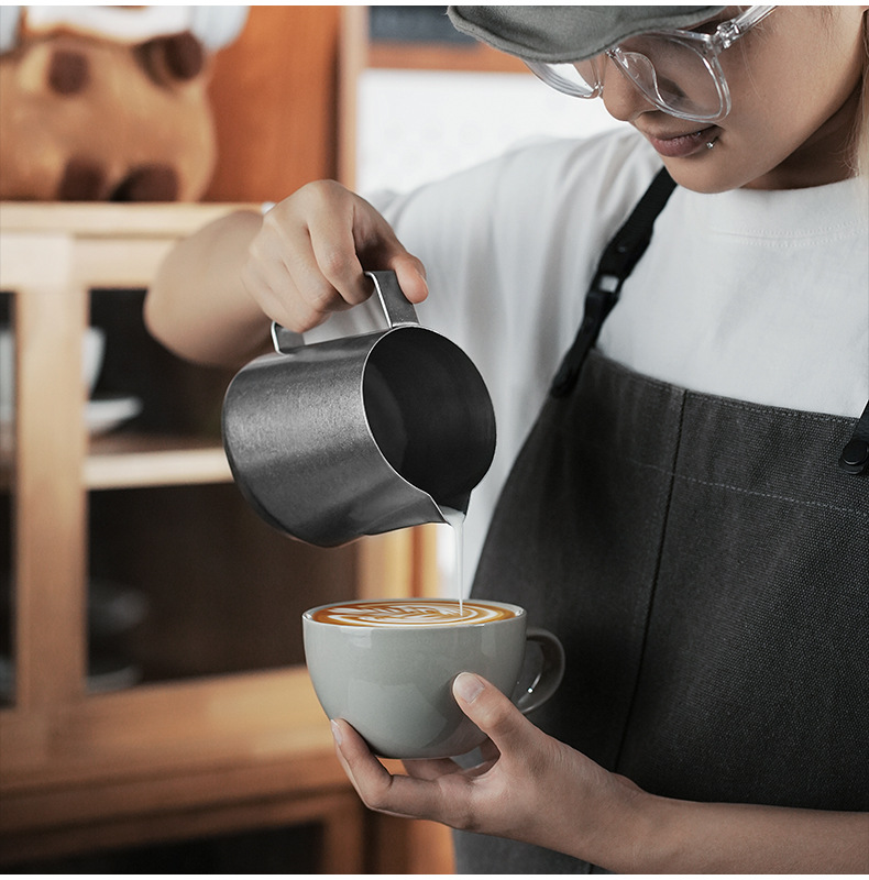 目盛付きステンレス製のプルカップを厚くした花式コーヒーの斜口口口のミルクポット350/450/600ml