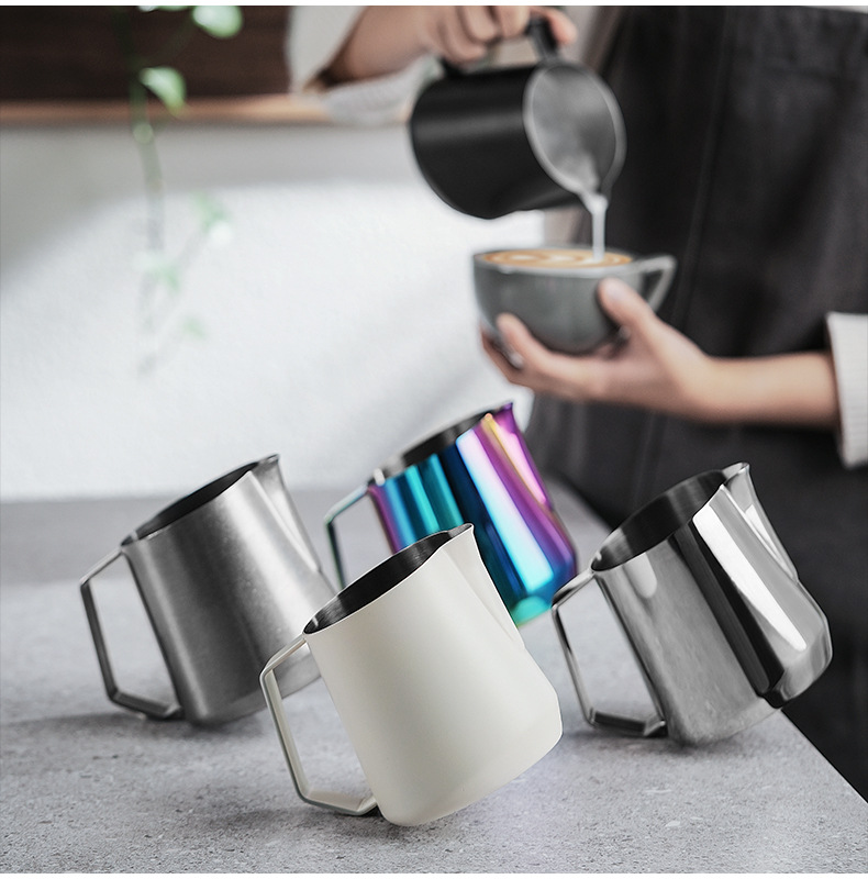 爆撃機タービンミルク缶コーヒープルシリンダミルク缶プルカップ先口ステンレスミルク缶プルカッププルポット