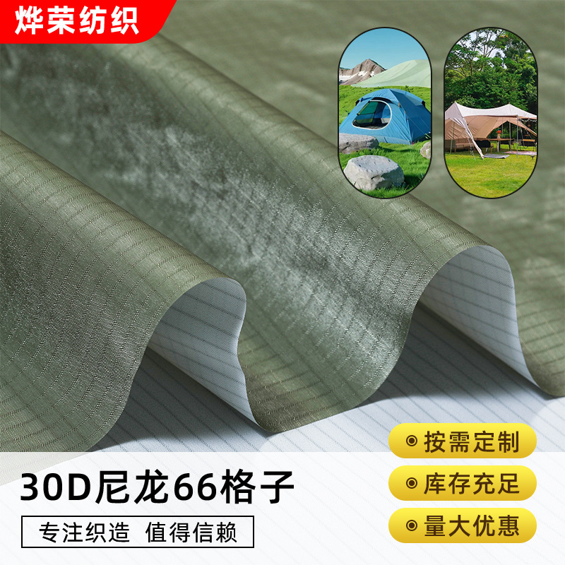 30dナイロン66格子防水布バッグ布耐摩耗性耐引き裂きpuコーティング凧パラシュート生地