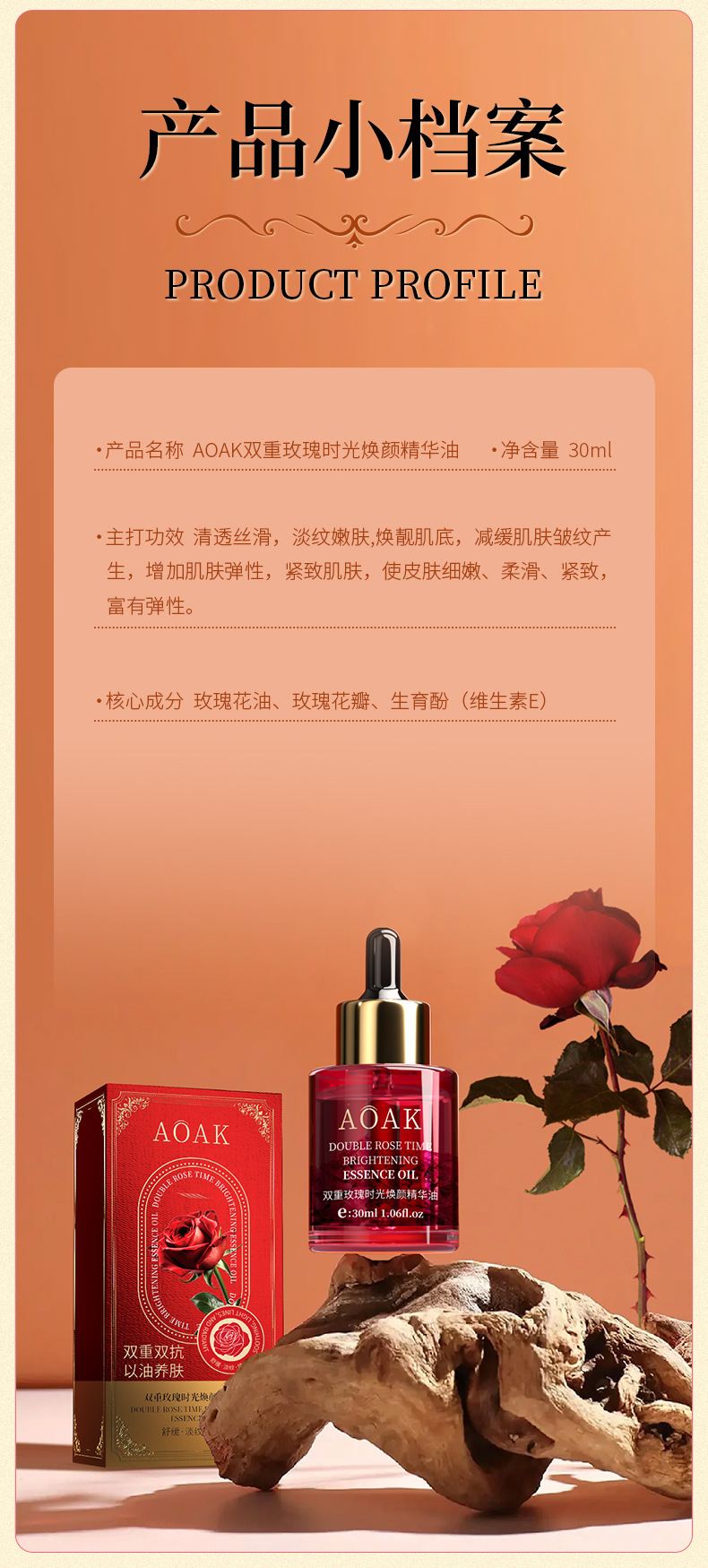ダブルローズエッセンシャルオイルは肌の色を明るくし、保湿し、潤いを与え、リフトアップし、引き締め、しわを防ぎ、小じわを軽減します スキンケアエッセンス
