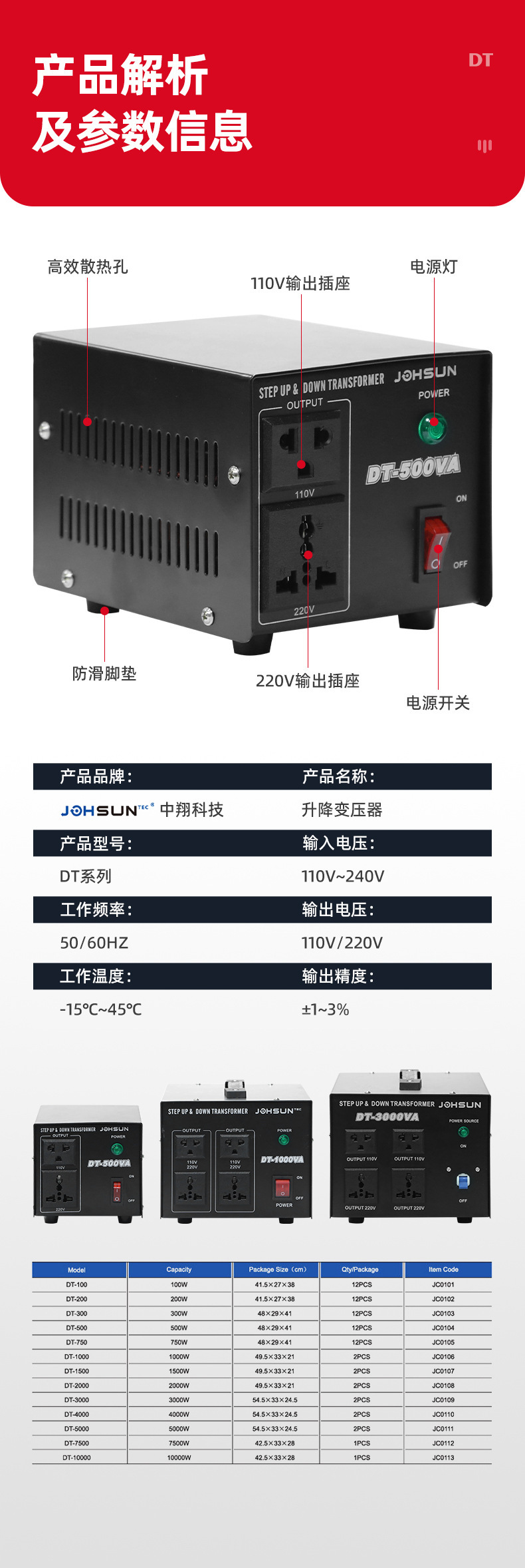 DT-3000VA電圧変換器220v回転110v電源変換器電圧昇降変圧器