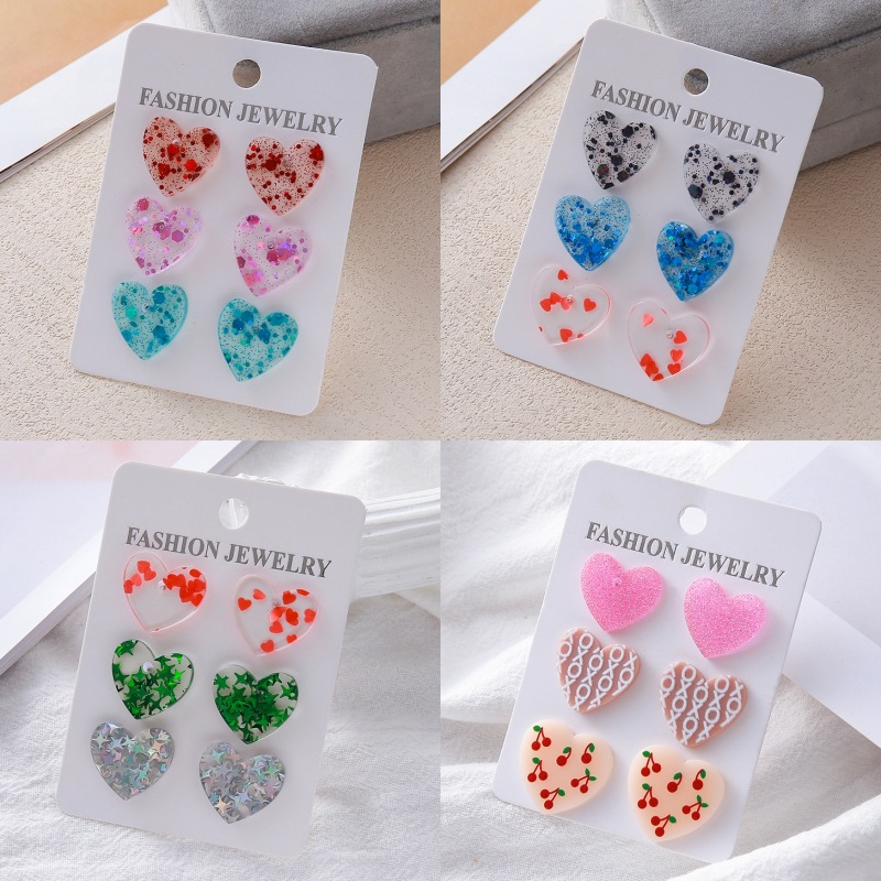 ヨーロッパとアメリカのクロスボーダージュエリーアクリルラブイヤリングカラフルなプリント小さな新鮮なハート型セットイヤリングイヤリング卸売