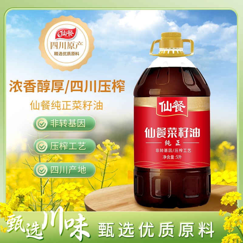 厂家直销仙餐非转基因一级压榨5l菜籽油四川风味菜油批发油食用油