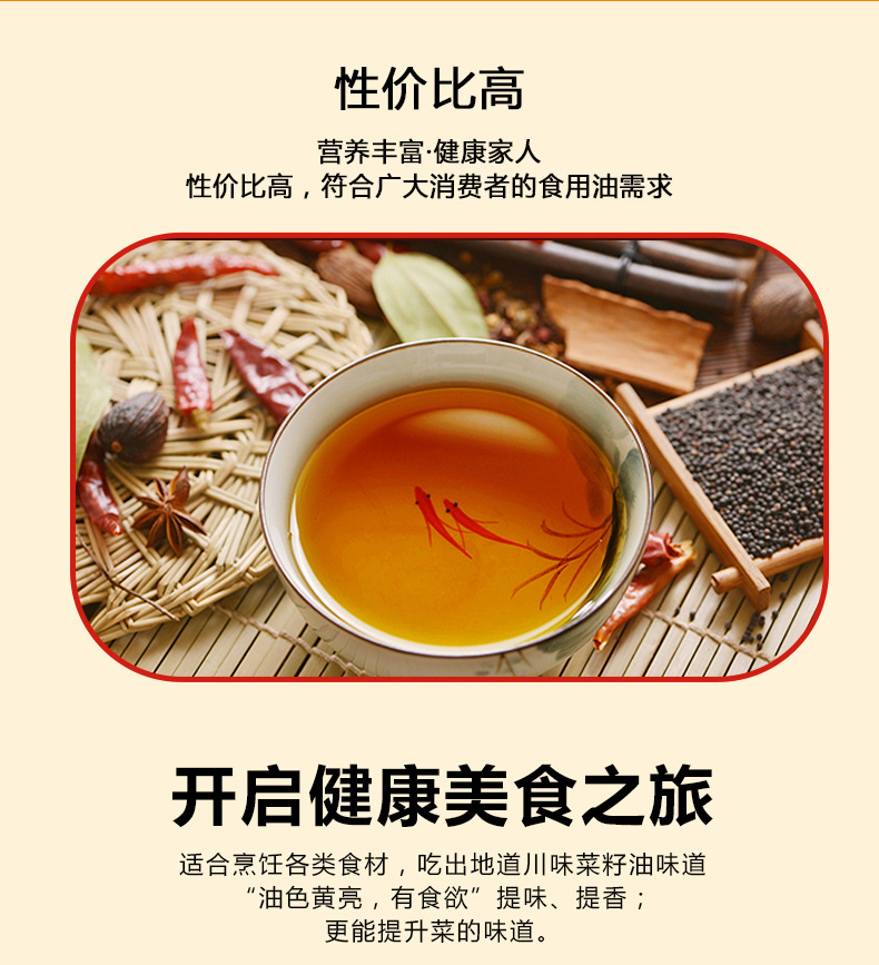 仙食純正赤標菜種油5L食用油四川純正菜種油大桶家庭用炒め植物油