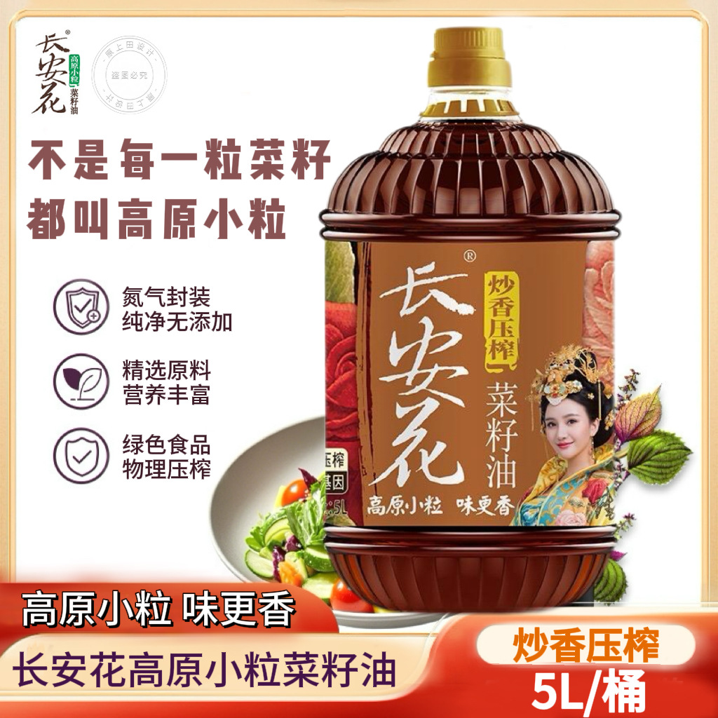 【长安花炒香压榨】高原小粒菜籽油5L装特香风味物理压榨非转基因
