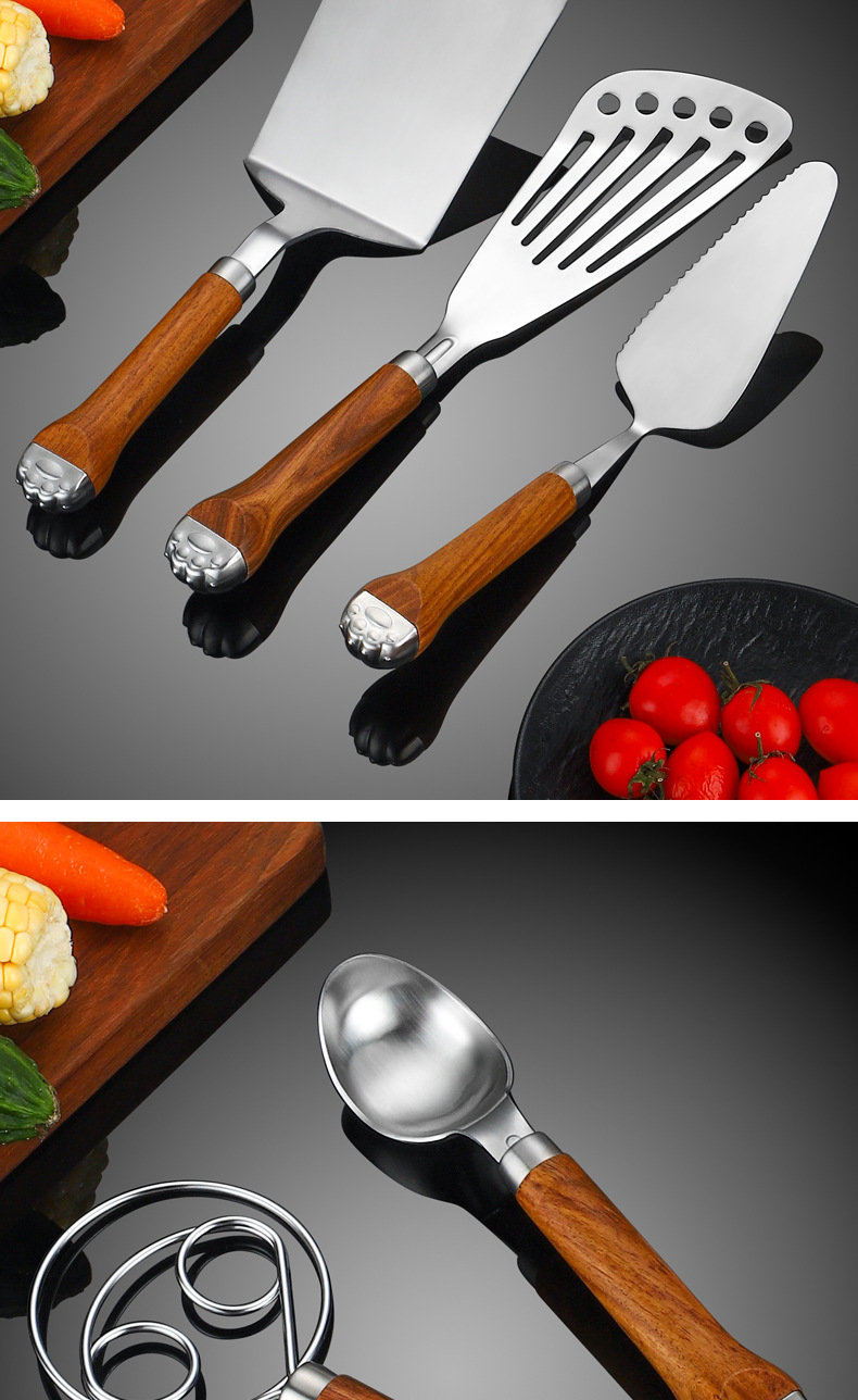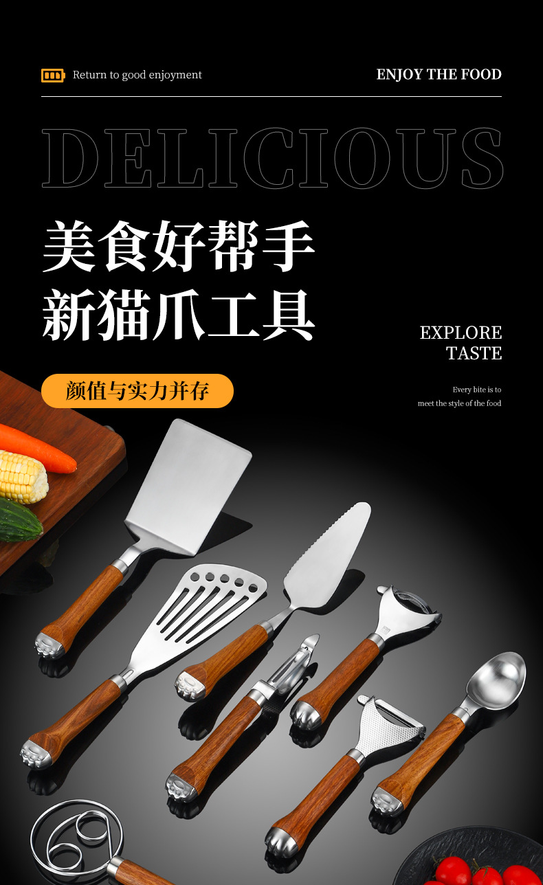 猫爪キッチンガジェット304ステンレス木柄と麺器小麦粉ふるいアイスクリームスプーントウモロコシ削り皮ナイフ