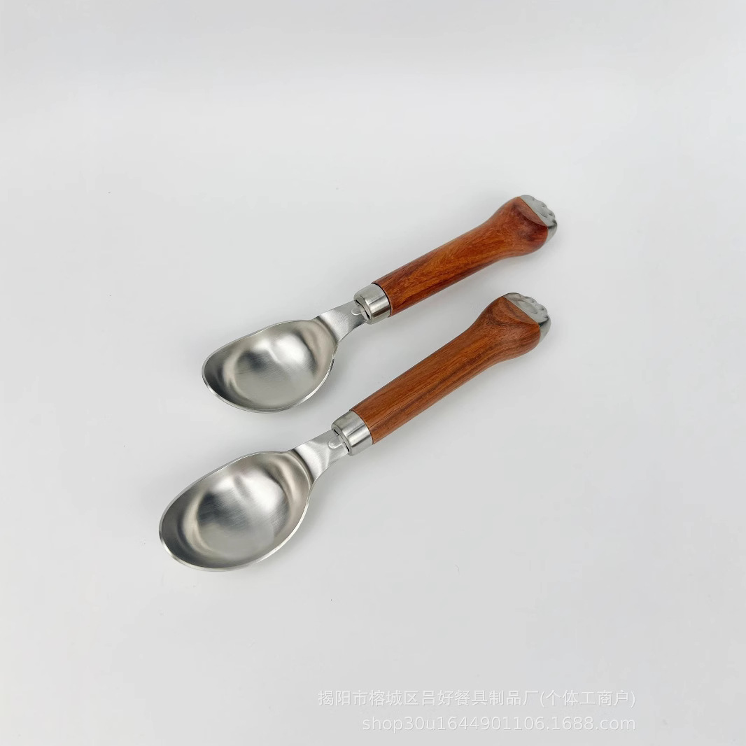 現物304ステンレスアイスクリームスプーン木柄アイスクリームスプーンミルクティー店商用果物スイカ掘削ボール神器