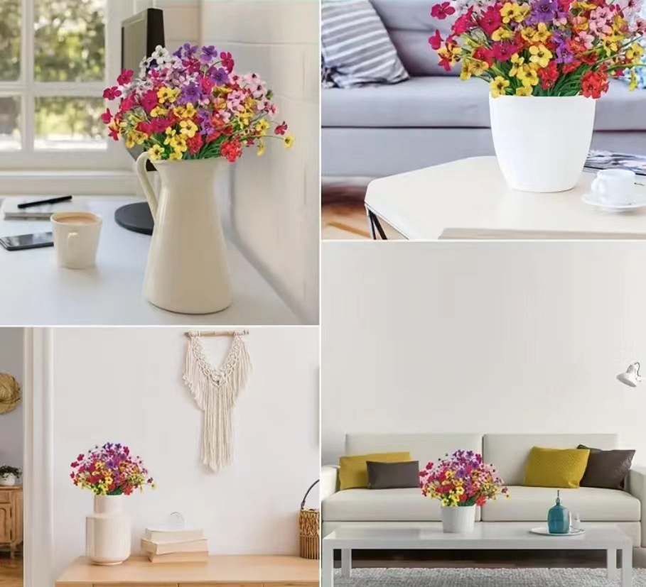 屋内屋外用プラスチック花飾り、紫外線に強い偽花灌木、花園家庭結婚式農舎用