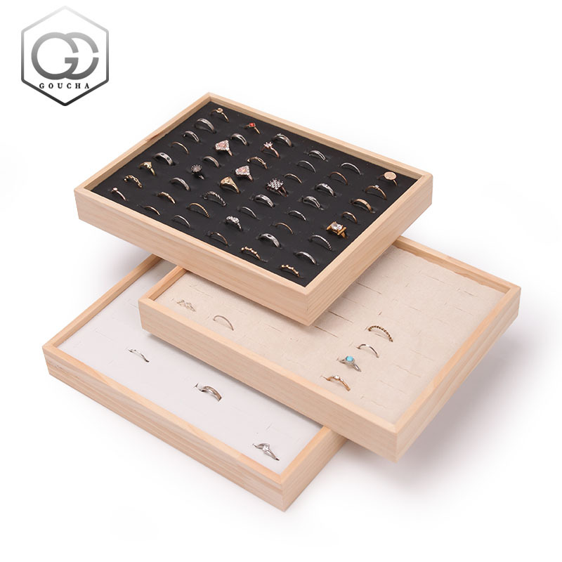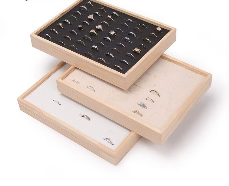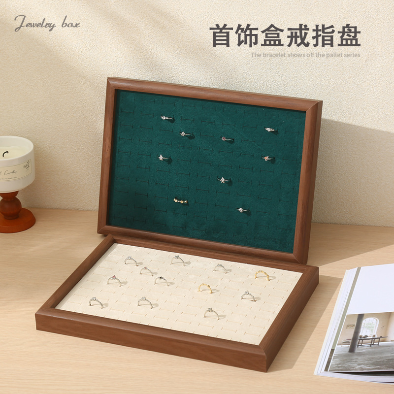 リング収納ボックス家庭用アクセサリー展示枠軽豪華指輪収納展示盤木目フランネルジュエリートレイ