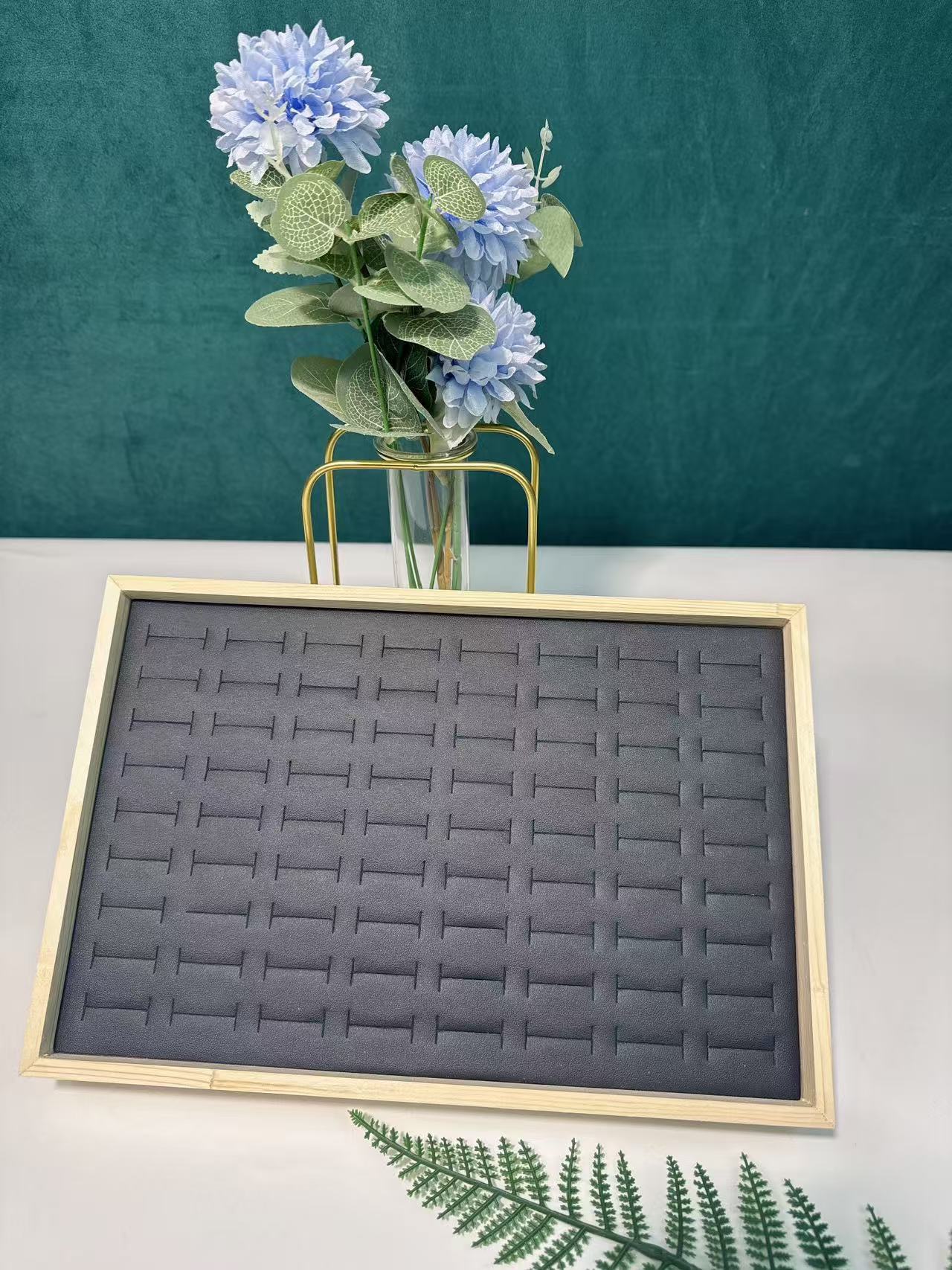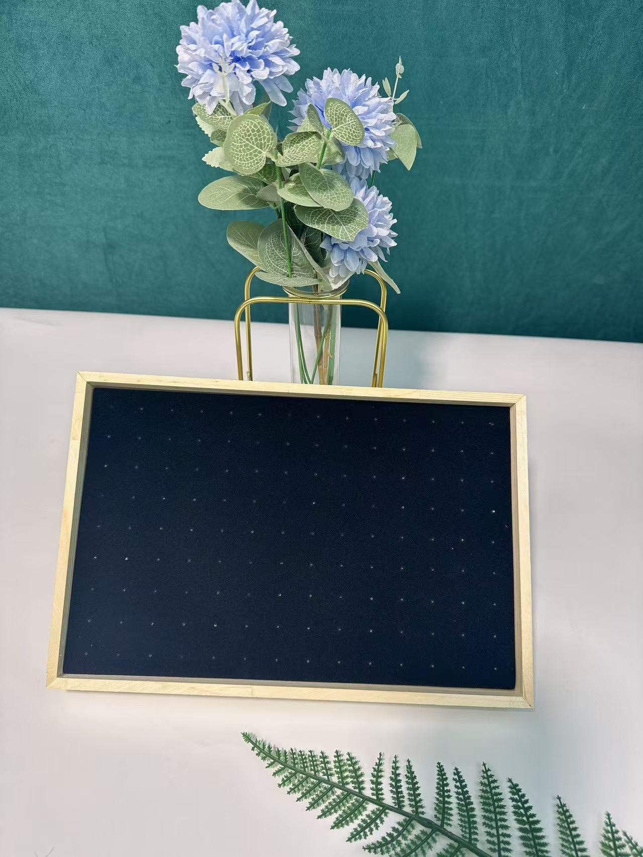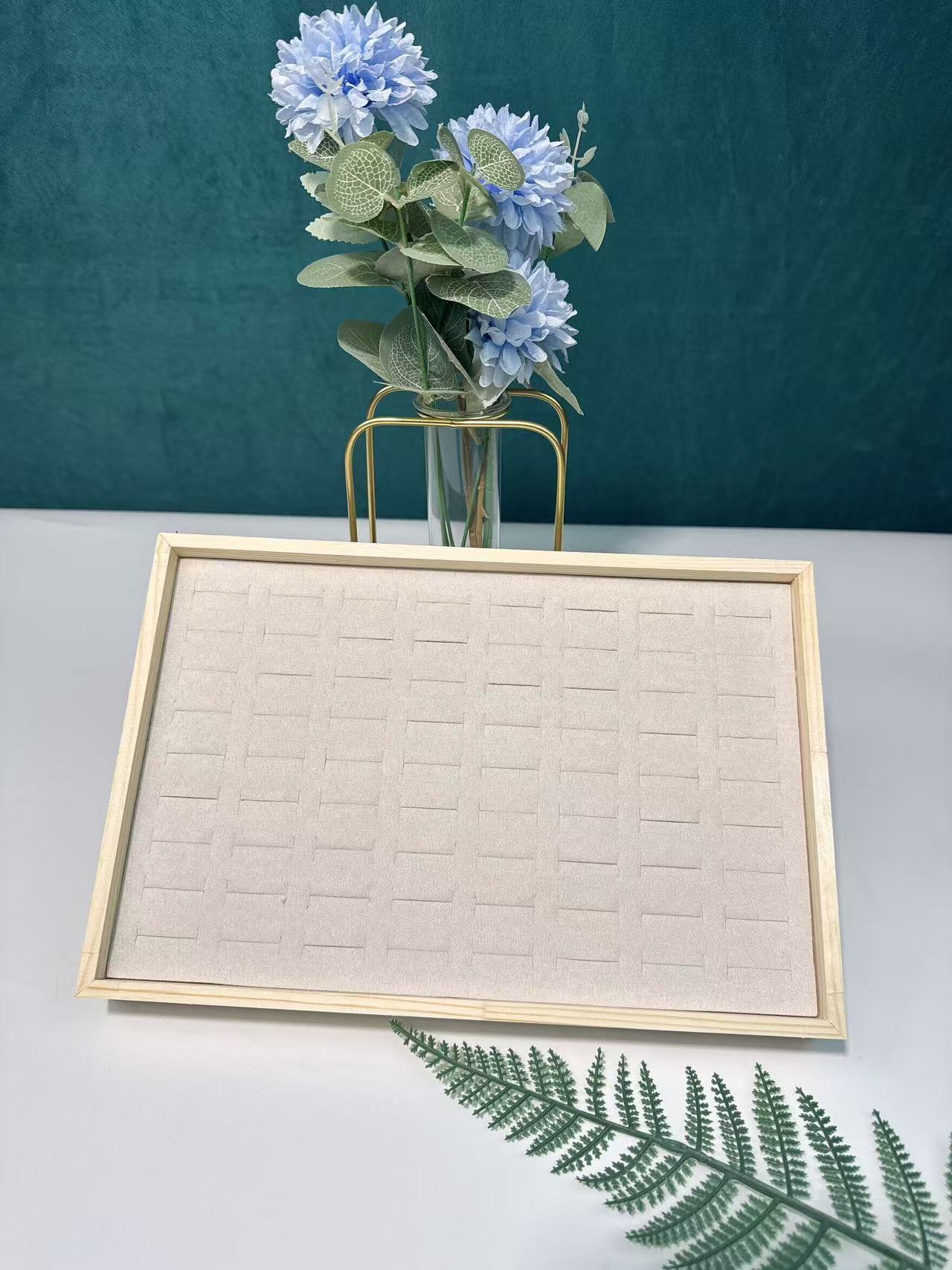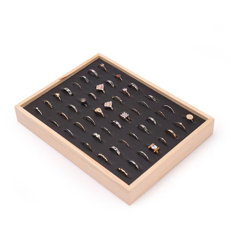 简约实木戒指展示盘戒圈对戒钻戒银戒小号百位收纳托盘48位绒面盘