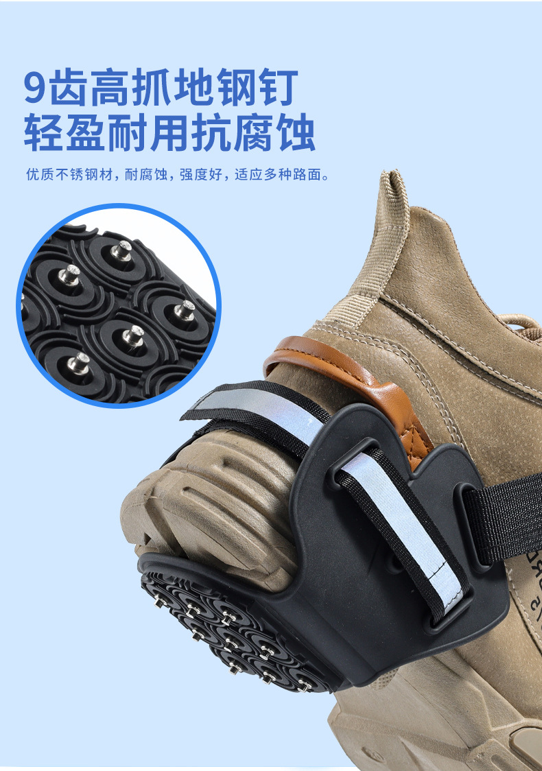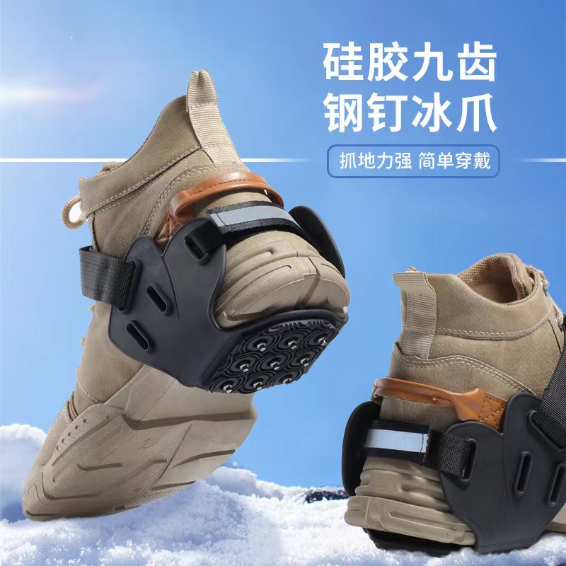 户外冰爪登山防滑鞋套雪地冬季鞋钉雪爪防滑钉鞋套9钉脚后跟冰爪