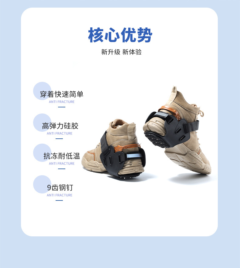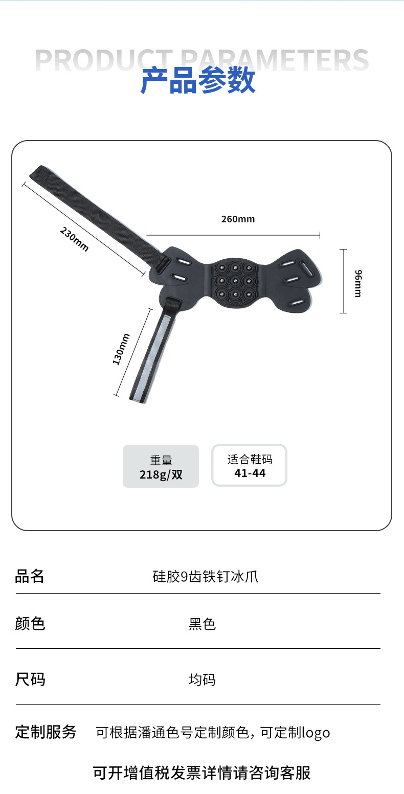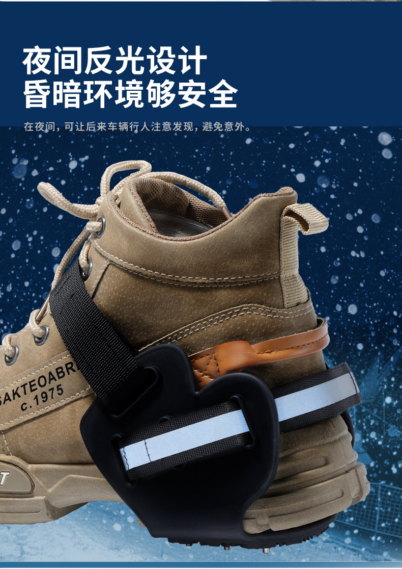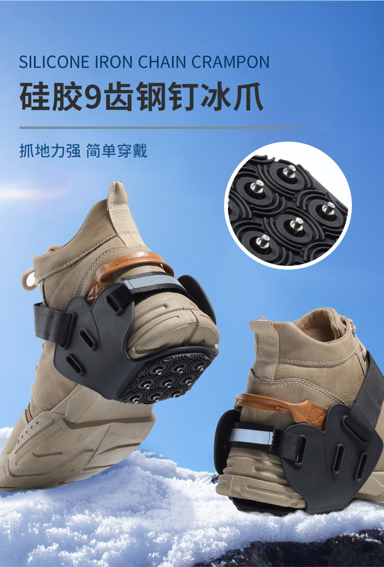 硅胶7钉防滑冰爪不锈钢9钉户外登山攀岩雪地防滑反光魔术贴鞋套