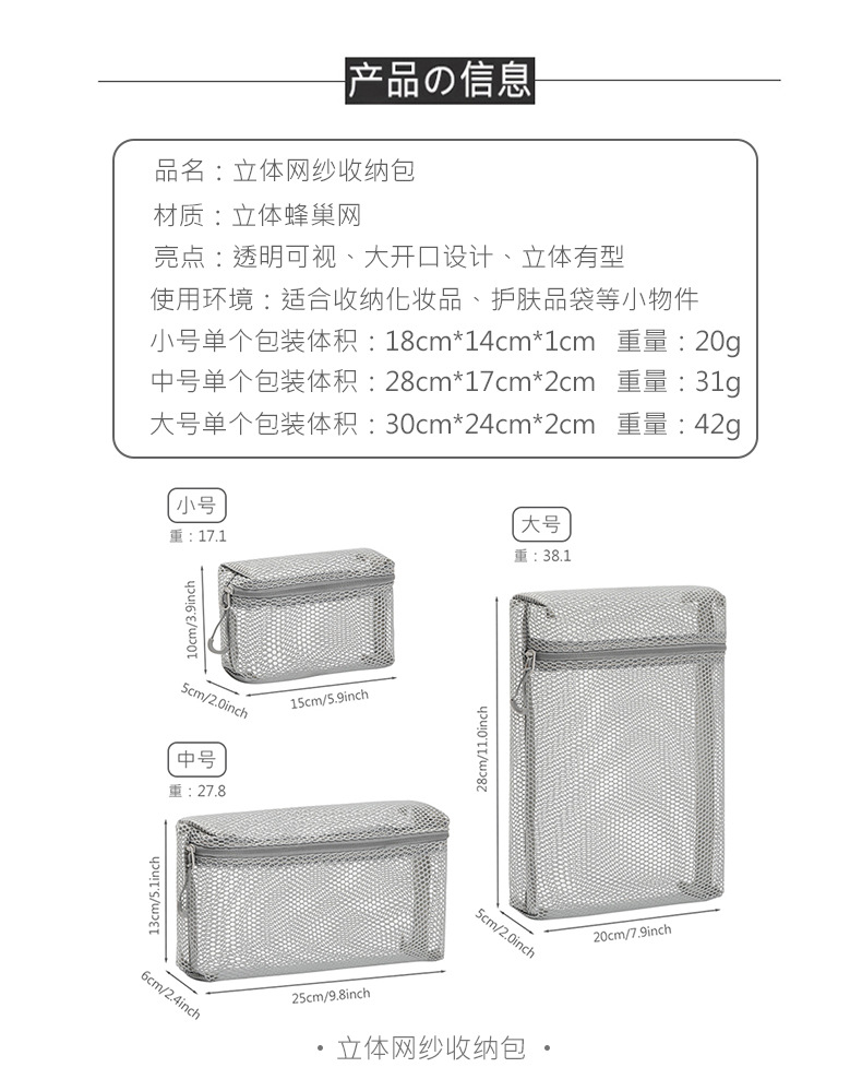 无印同款 锦纶收纳包大容量便携迷你化妆包 网眼透明杂物袋2025款