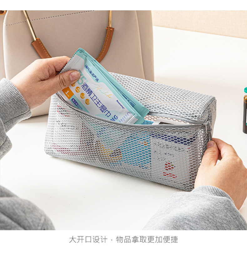 網糸ハニカム薬包多機能網糸収納バッグ可視収納袋旅行携帯型旅行薬バッグ