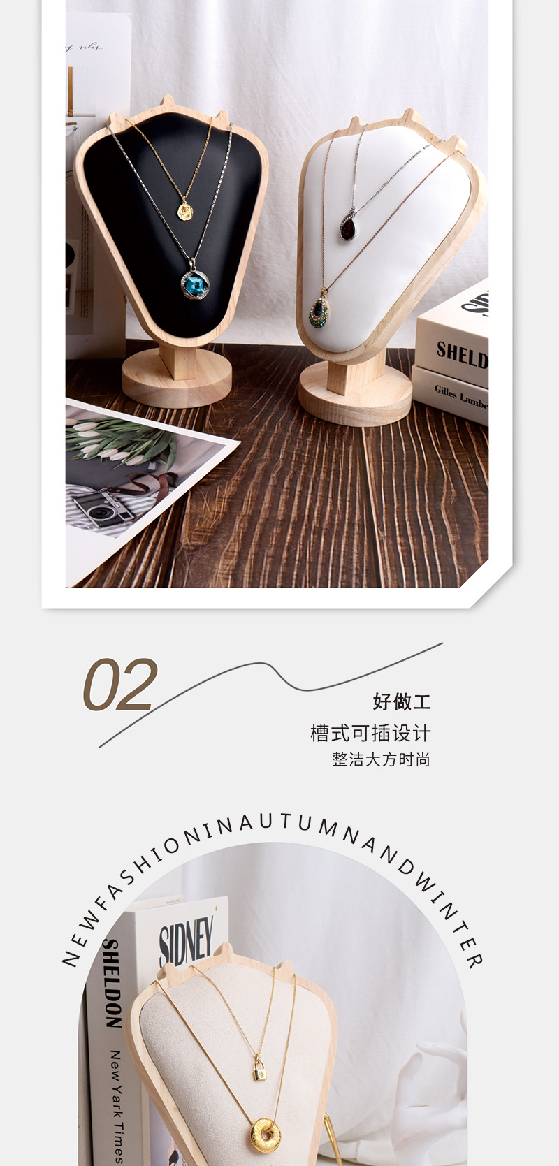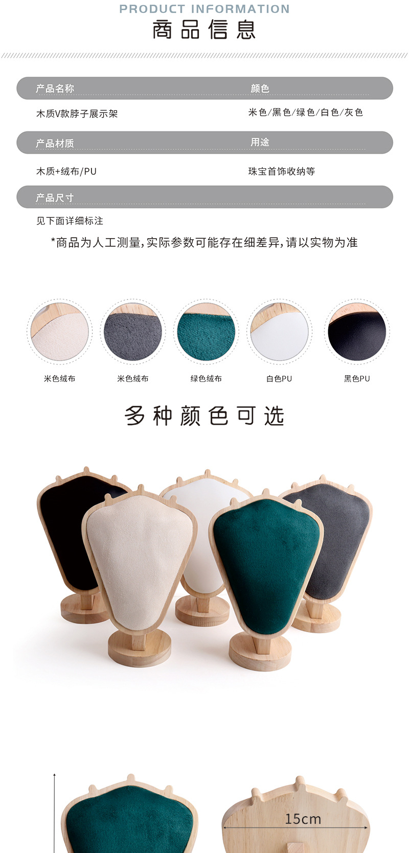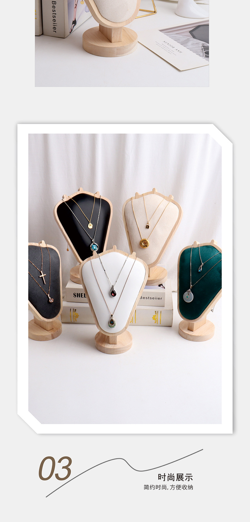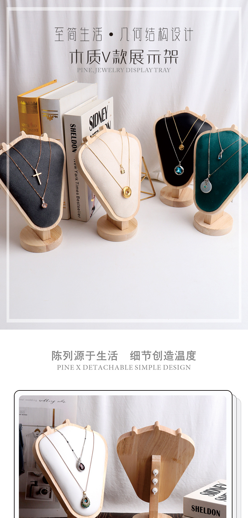 木製 V スタイルネックスタンドジュエリーディスプレイ小道具ベルベット立体収納ラック PU ネックレスディスプレイラック