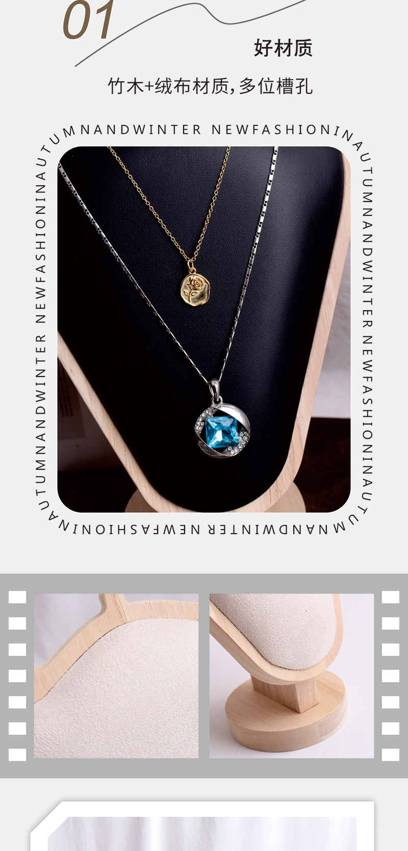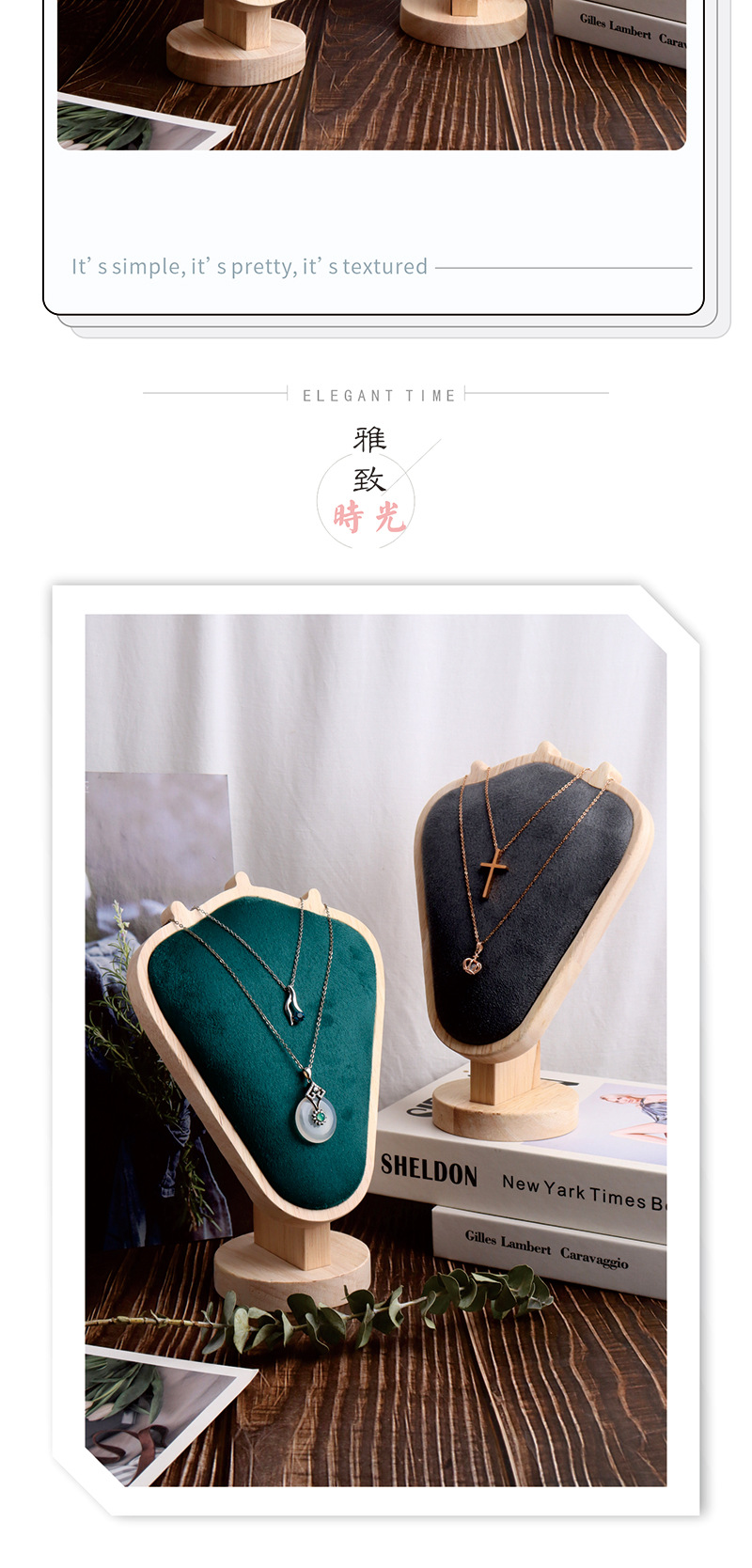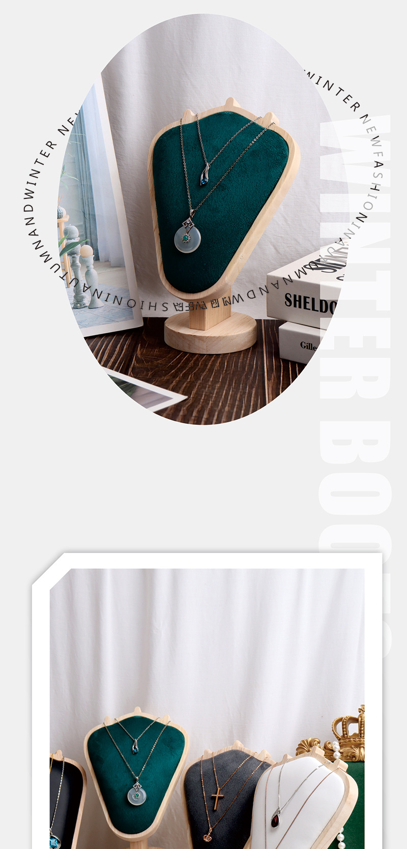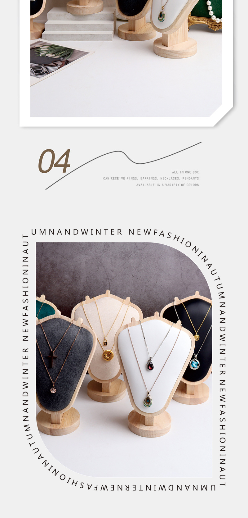 木製 V スタイルネックスタンドジュエリーディスプレイ小道具ベルベット立体収納ラック PU ネックレスディスプレイラック