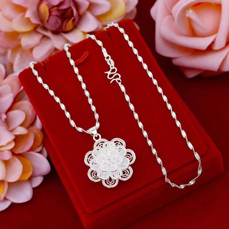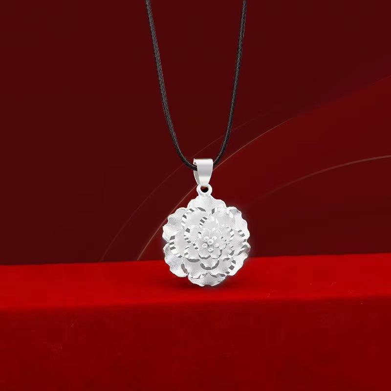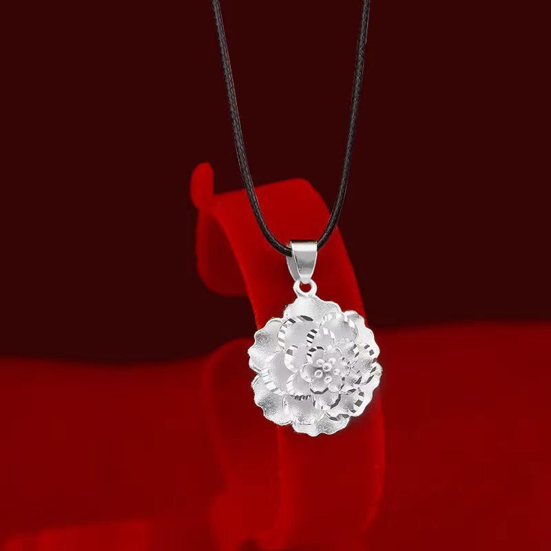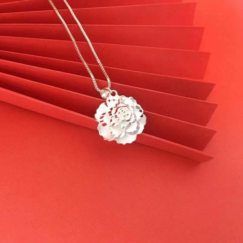 銀メッキの海棠の花のエレガントで汎用性の高い牡丹の花のペンダントネックレス 銀メッキの花のペンダント鎖骨チェーン卸売