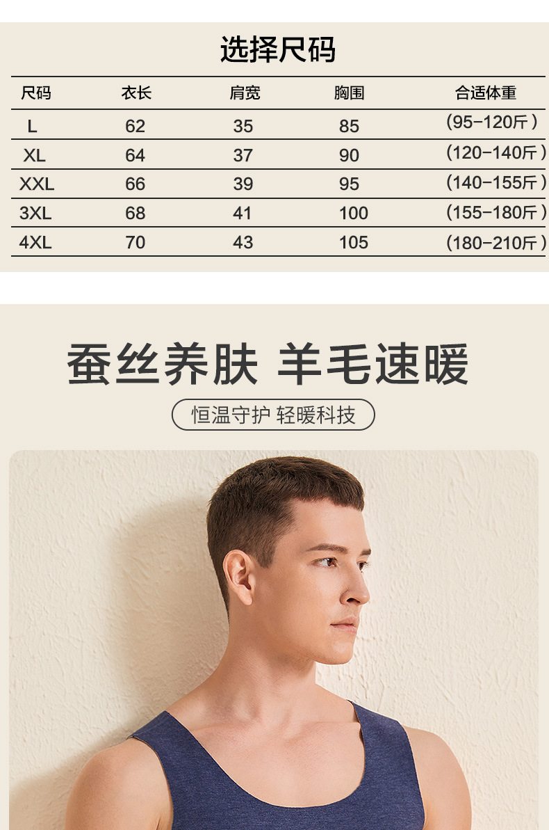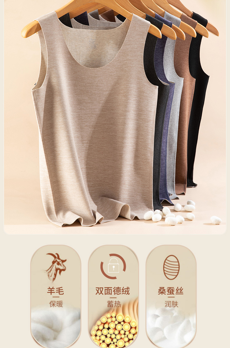 德绒保暖背心男士内穿加绒加厚含羊毛蚕丝发热坎肩马甲上衣秋冬季