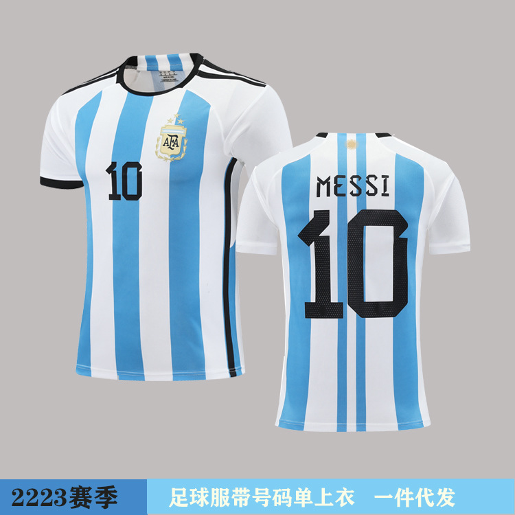 2223アルゼンチンのサッカーの上着の男女のユニフォームのメッシユニフォームのシャツのゆったりした版の越境