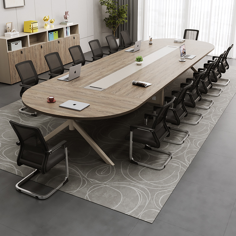 シンプルでモダンな商談テーブル、楕円形の大型長方形オフィス会議テーブル、長テーブルと椅子の組み合わせ