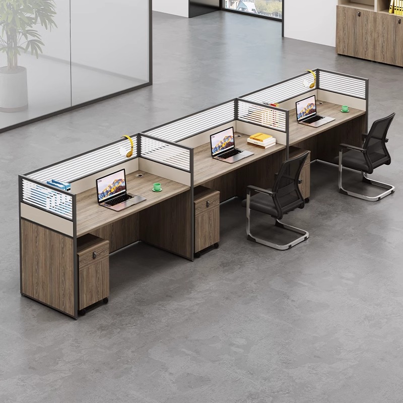 従業員の事務机と椅子の組み合わせは簡単で、現代の三人の事務机の事務室の財務室の屏風の事務机です。
