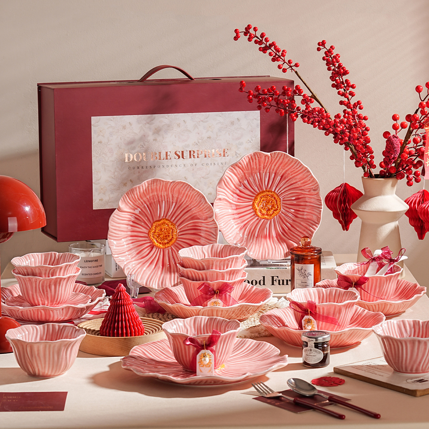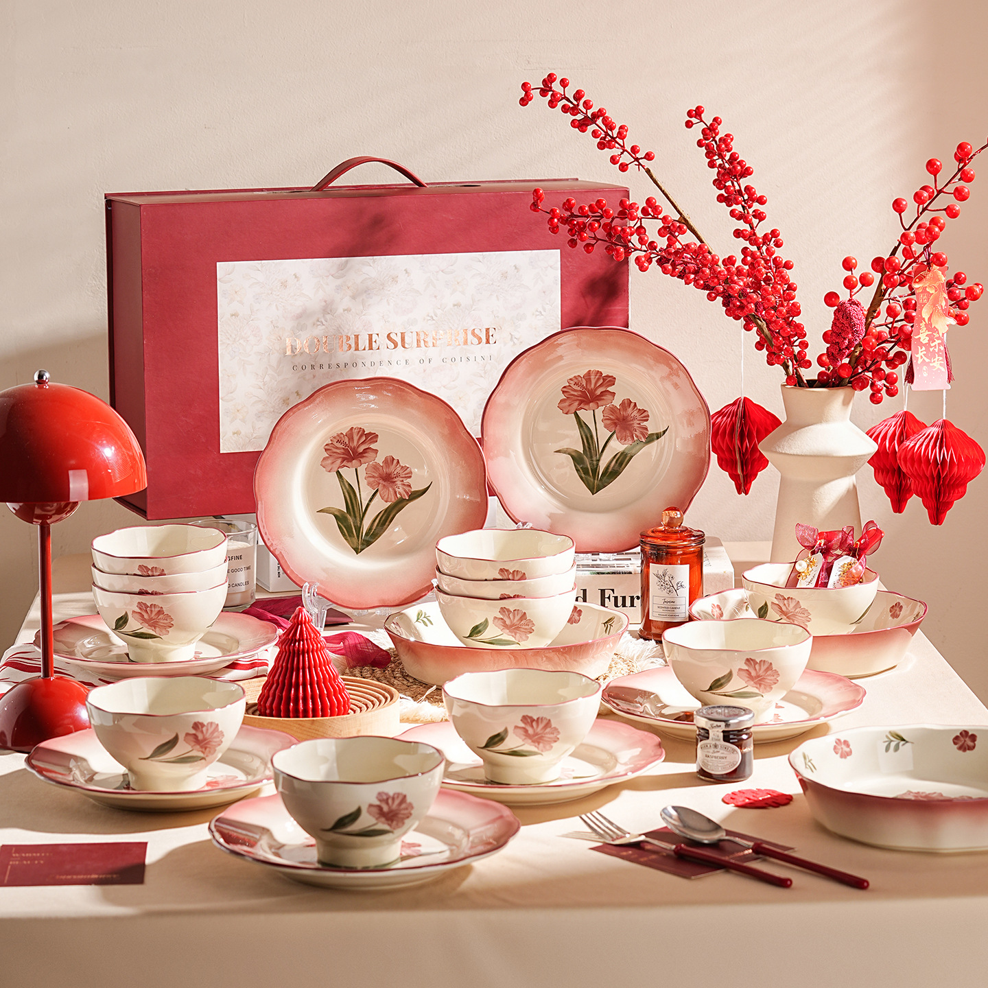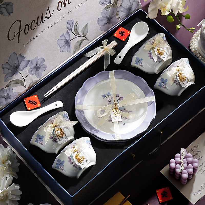 高級食器皿食器陶磁器新婚プレゼント花嫁赤い食器皿箸セット新居結婚ギフトボックス