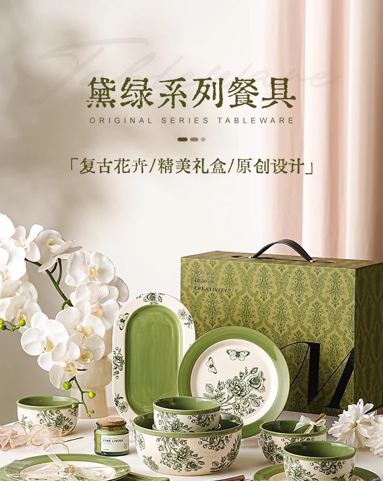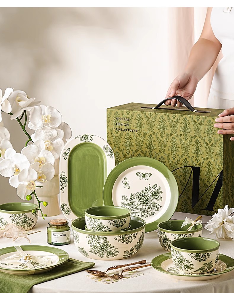 花開陶磁器食器皿セット家庭用新家ジョー新居プレゼント友人引っ越し暖かい高級プレゼント