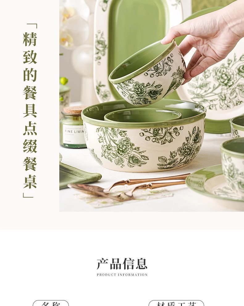 釉下彩碗碟餐具套装家用2025新款乔迁新居碗盘清新碗筷高颜值碗具