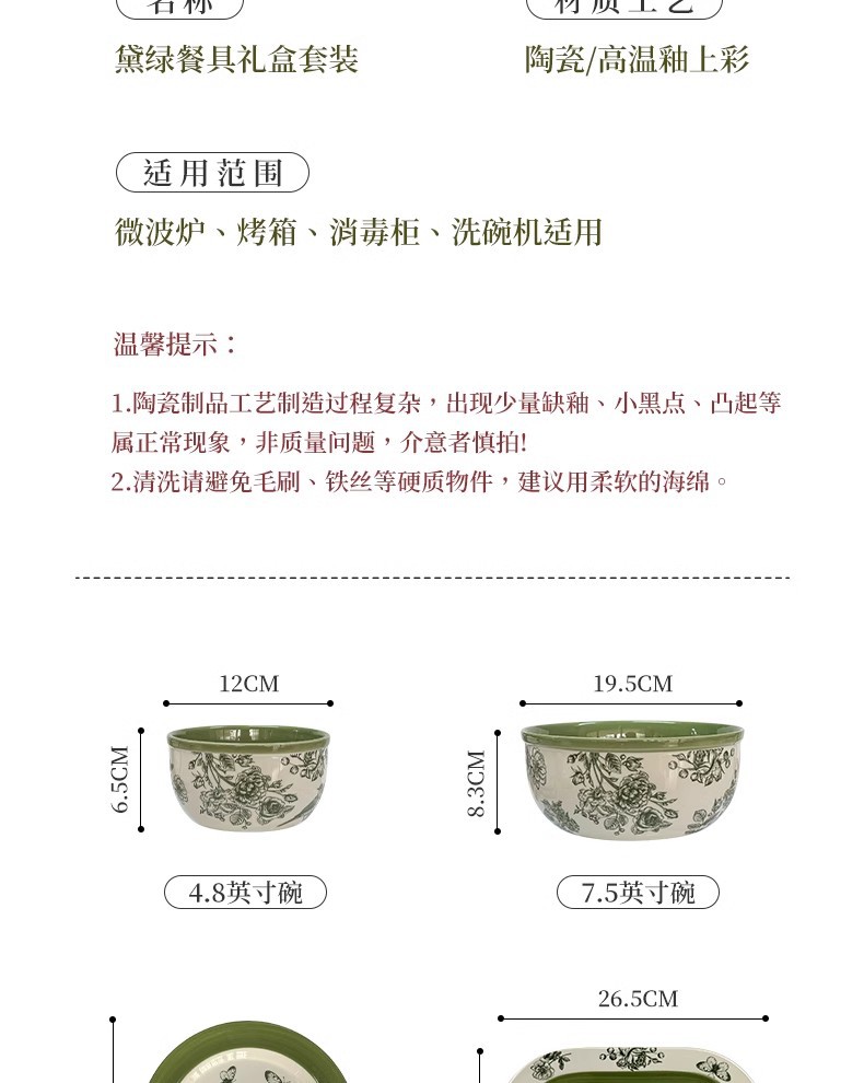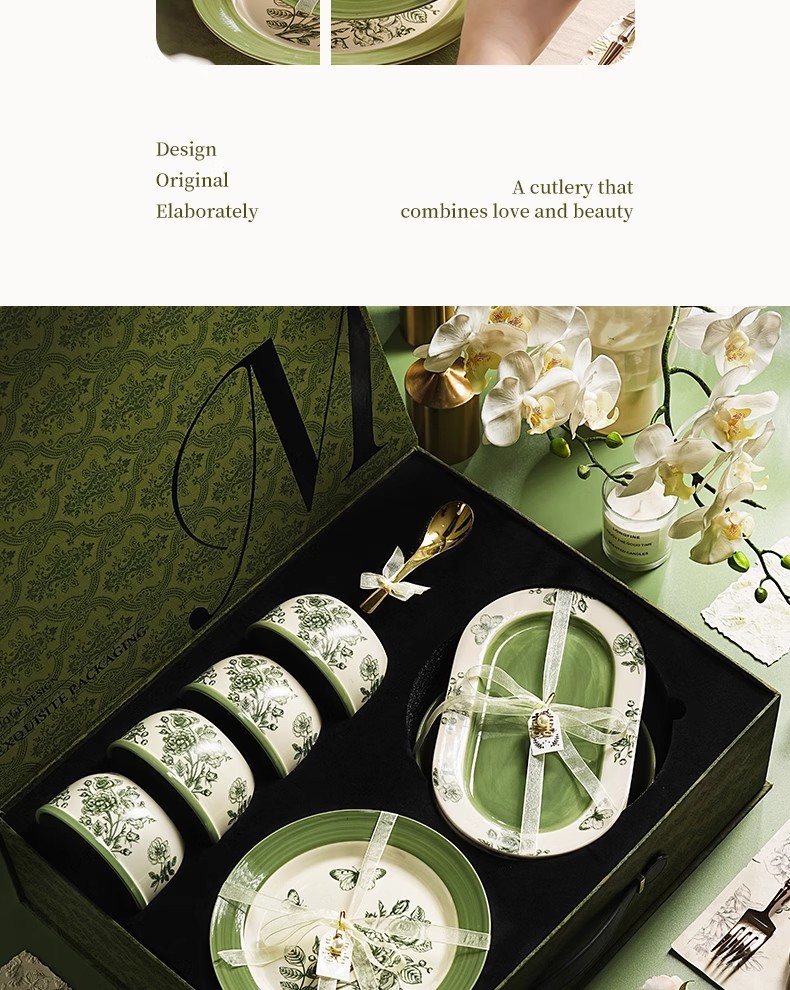 黛緑陶磁器の碗の皿のセットの贈り物の箱は引っ越して新居に引っ越します。