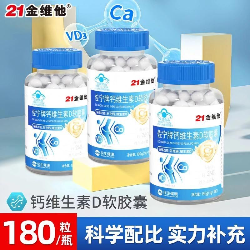 21金维他佐宁牌钙维生素D软胶囊180粒补钙易吸收碳酸钙VD官方正品