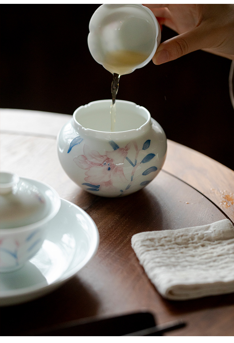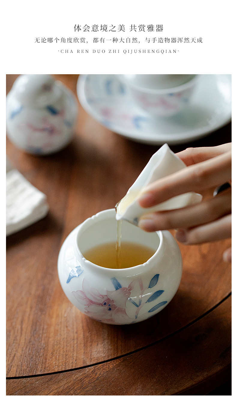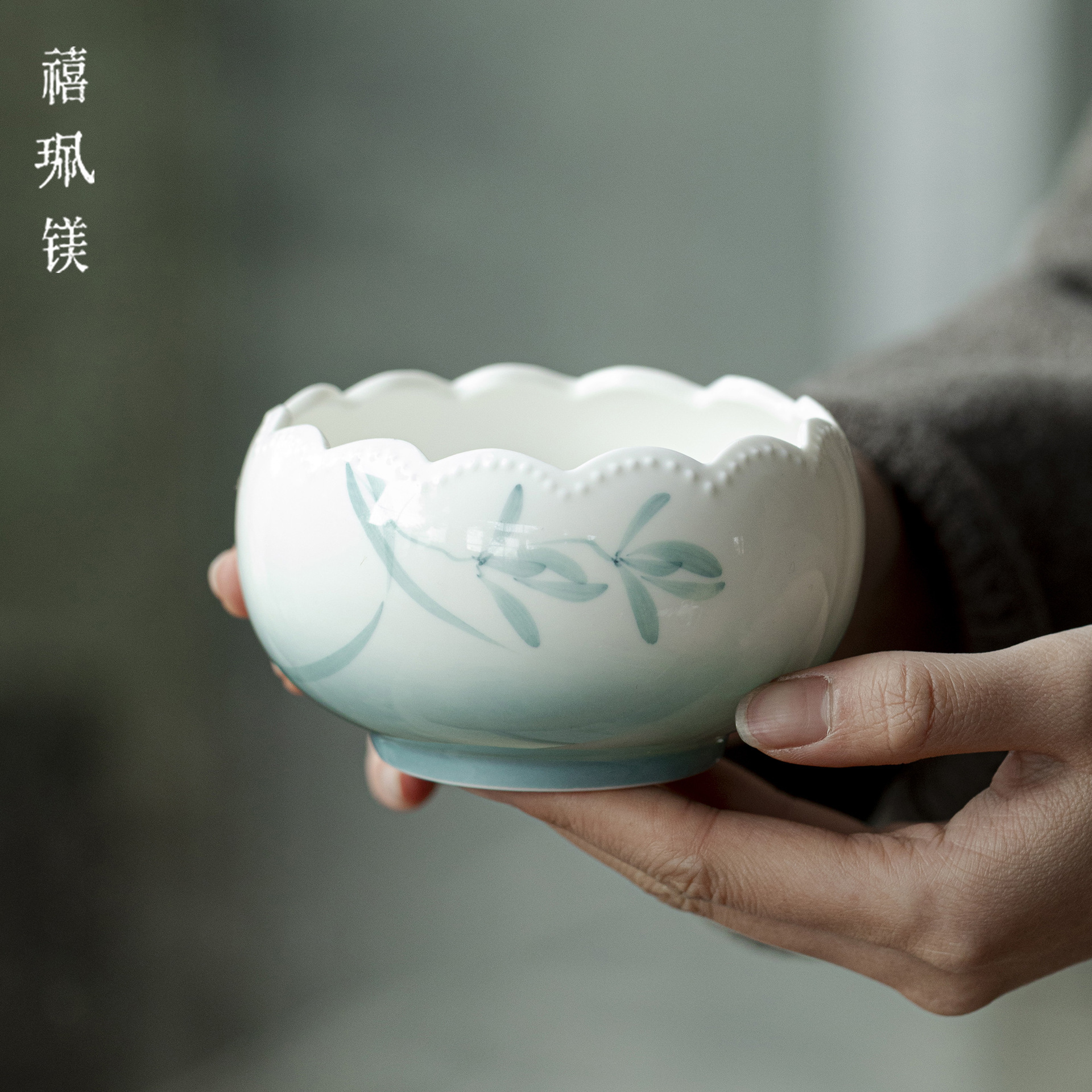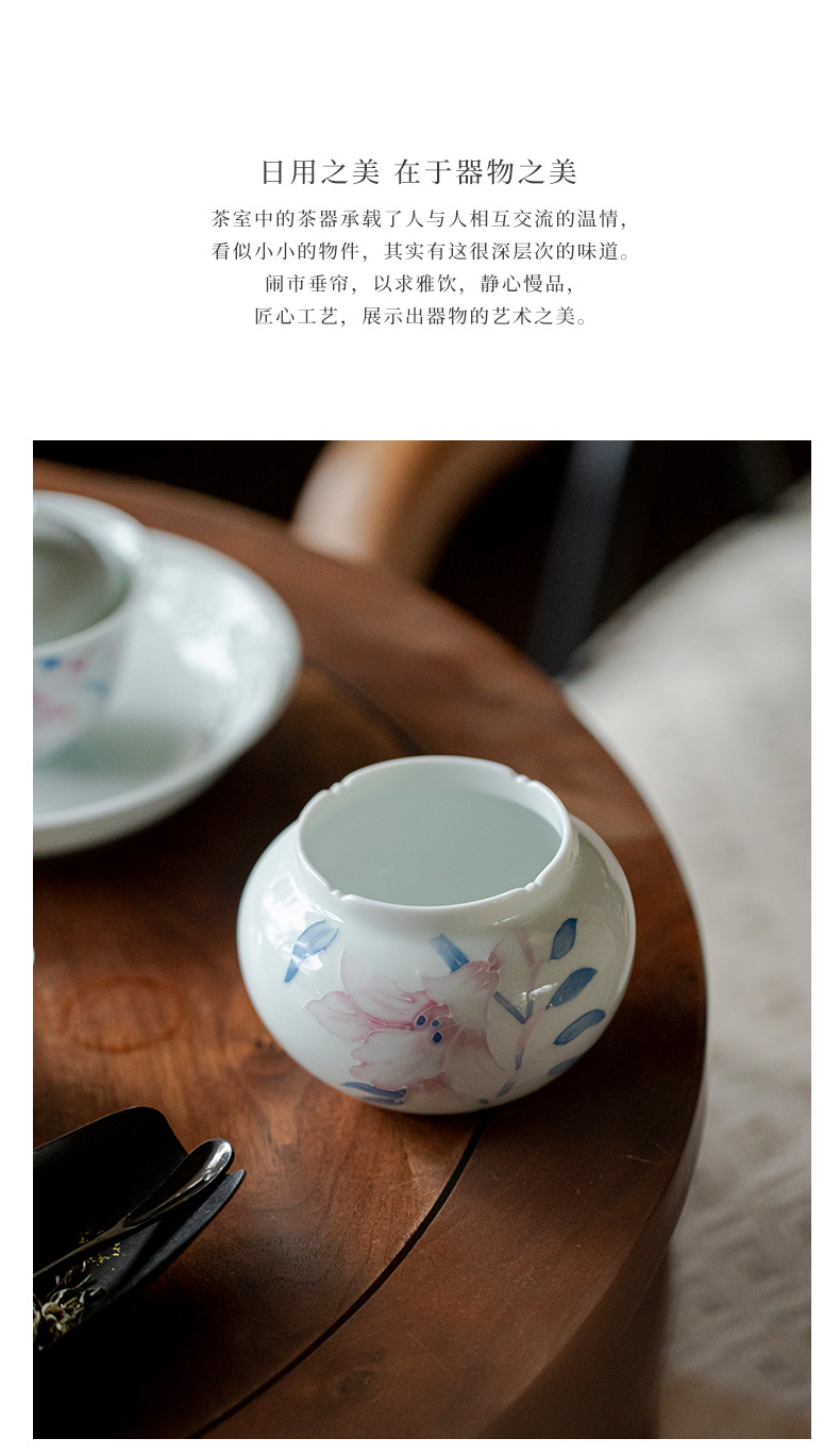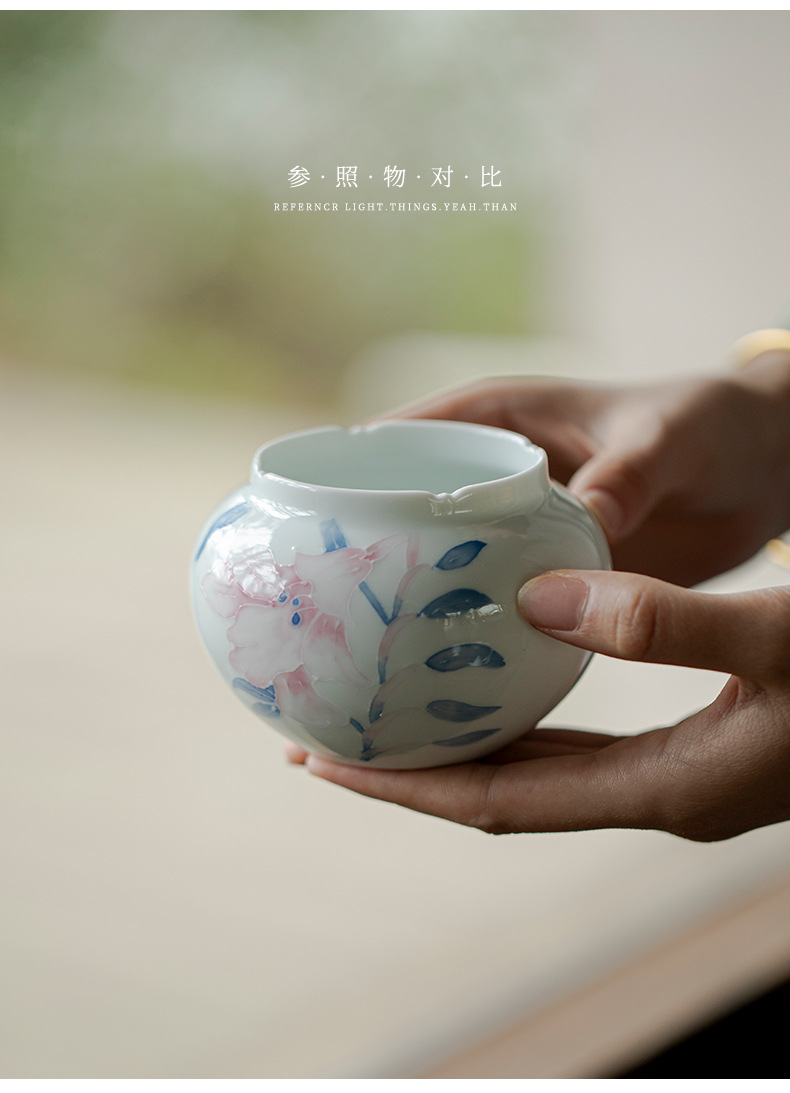 禧マグネシウム玉泥白磁手描き百合花廃水筒茶道部品陶磁器建水家庭用トランペット水孟